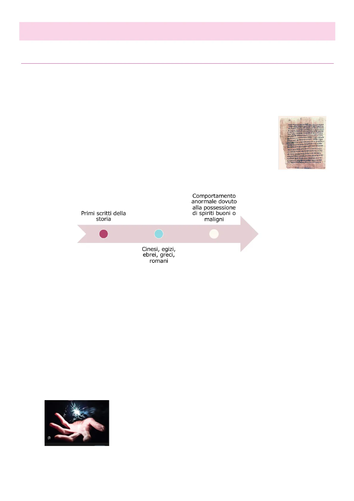 Primi scritti della storia Comportamento anormale dovuto alla possessione di spiriti buoni o maligni Cinesi, egizi, ebrei, greci, romani