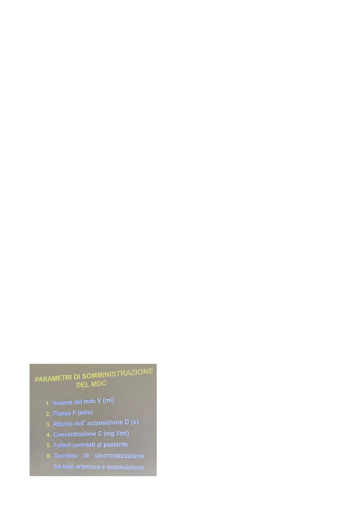 Questi parametri influiscono sulla dinamica del mdc, che a sua volta influisce sulle caratteristiche di enhancement e densità (e quindi di attenuazione) del fascio fotonico non soltanto a livello vascolare ma anche a livello parenchimale.