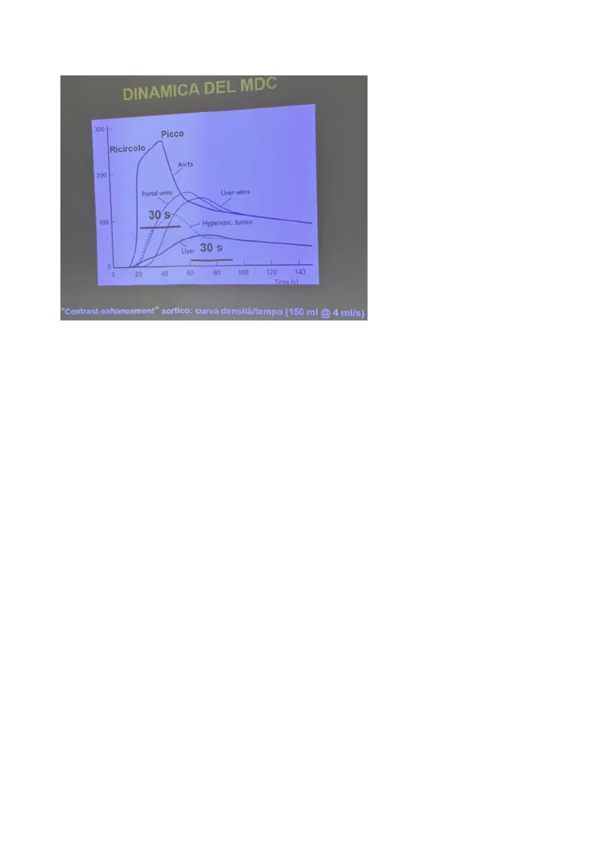 In particolare, si osserva cosa accade a livello dell'aorta, del sistema venoso (in particolare dei vasi epatici) e del parenchima epatico; la curva tratteggiata fa riferimento a possibili neoplasie ipervascolari sia primitive che secondarie.