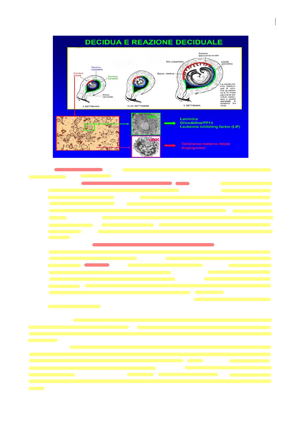 Pag. 1 di 13Embriologia Lezione nº 16 | DECIDUA E REAZIONE DECIDUALE Celoma extra-embrionale Sito placentare Cavità amniotica Decidua capsulare Sacco vitellino Decidua basale Decidua * parietale La cavità ute- rina diminui- sce di volu- me (si oblite- ra al IV mese Muco cervicale cidua capsu- fare e quella s Il SETTIMANA III-IV SETTIMANA V SETTIMANA parietale fondono loro) Laminina Glicodelina/PP14 Leukemia inhibiting factor (LIF) UNK Tolleranza materno-fetale Angiogenesi