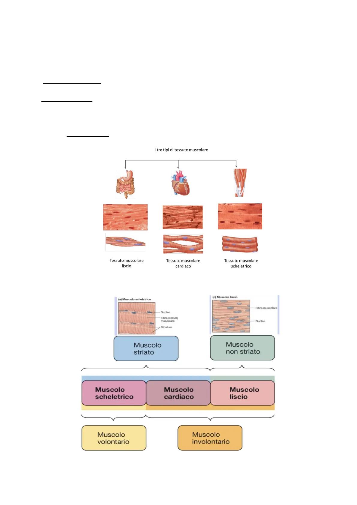 (a) Muscolo scheletrico (c) Muscolo liscio Fibra muscolare Nucleo Fibra (cellula) muscolare Nucleo Striature Muscolo striato Muscolo non striato Muscolo scheletrico Muscolo cardiaco Muscolo liscio Muscolo volontario Muscolo involontario