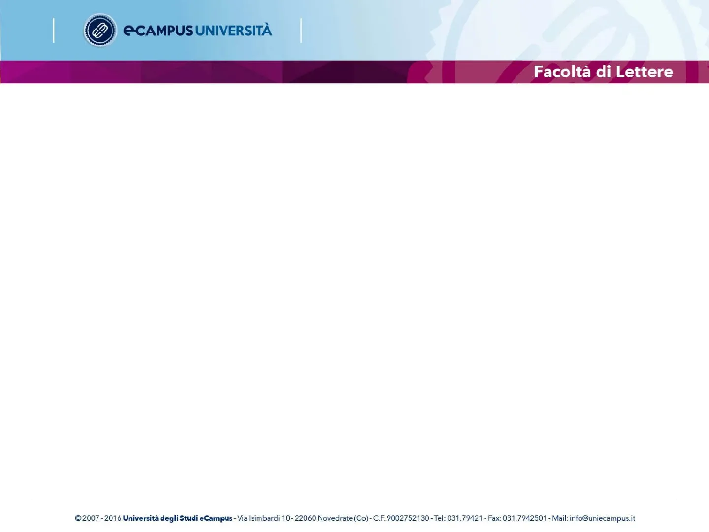 C 2007 - 2016 Università degli Studi eCampus - Via Isimbardi 10 - 22060 Novedrate (Co) - C.F. 9002752130 - Tel: 031.79421 - Fax: 031.7942501 - Mail: info@uniecampus.ite CAMPUS UNIVERSITÀ