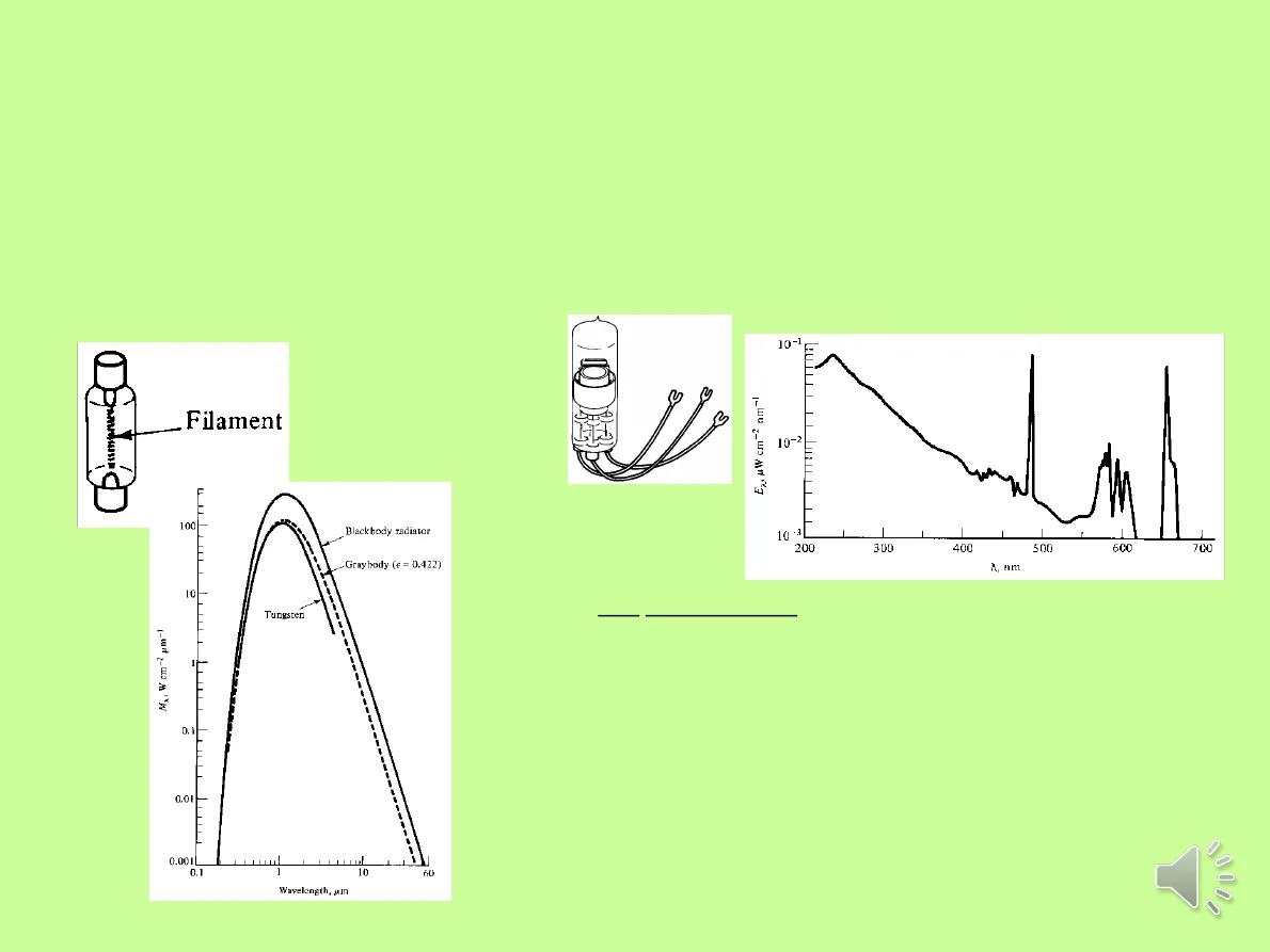 Incandescent Light Sources Sorgenti a filo incandescente sono costituite da una spirle di Ni-Cr riscaldata elettricamente a 1100K. Producono radiazioni a intensità inferiore al filamento di Nernst e alla Globar, ma sono più resistenti.