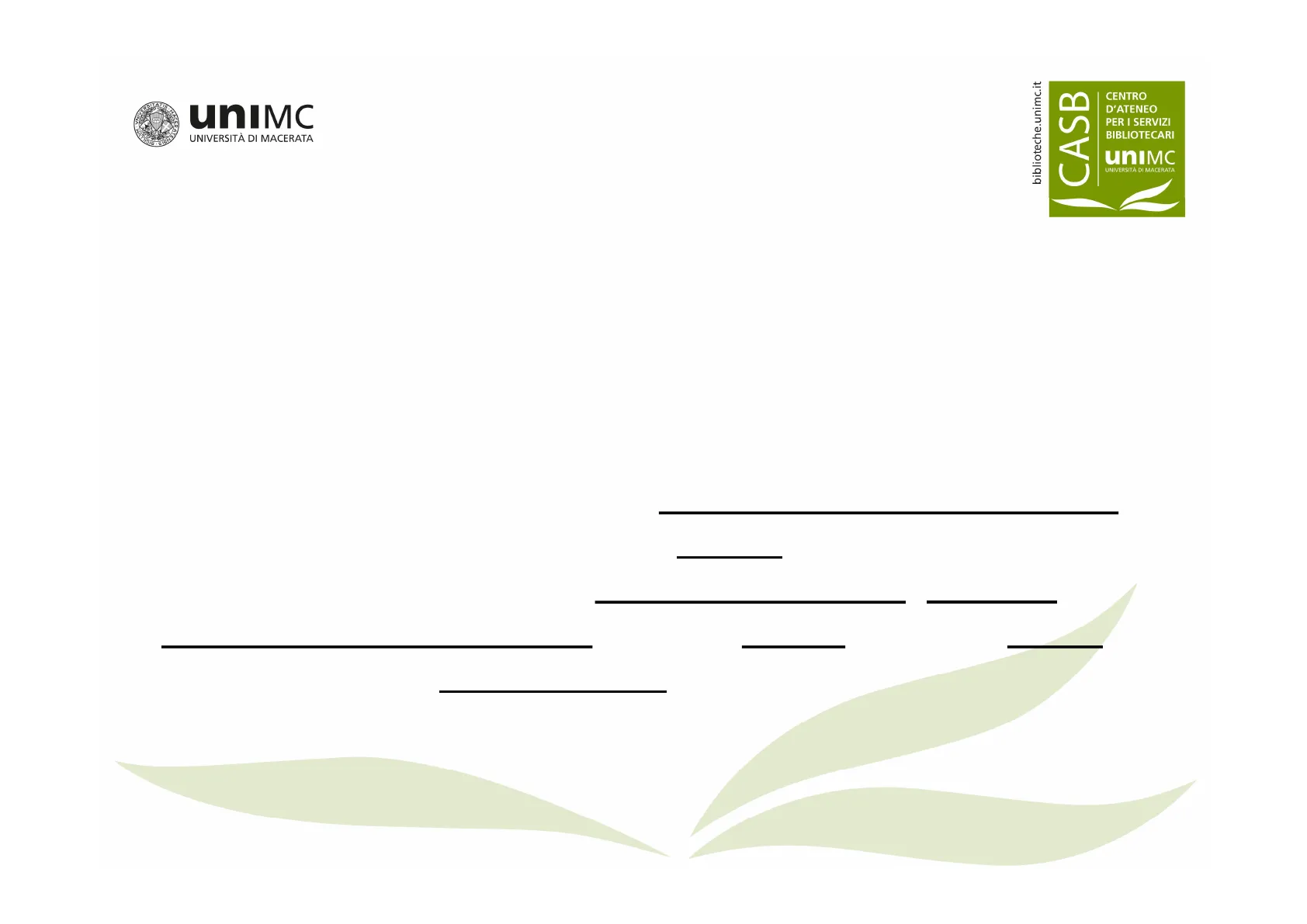 biblioteche.unimc.it Y CASB CENTRO D'ATENEO PER I SERVIZI BIBLIOTECARI unIMC UNIVERSITÀ DI MACERATA CONCETTI BASE: DESCRIZIONE BIBLIOGRAFICA E LE AREE ISBD (International Standard Bibliographic Description) + Servizi Anagrafiche Catalogo Acquisizioni Periodici OpenData&Monitor SebinaYOU Gestione catalogo Descrizione ISBD