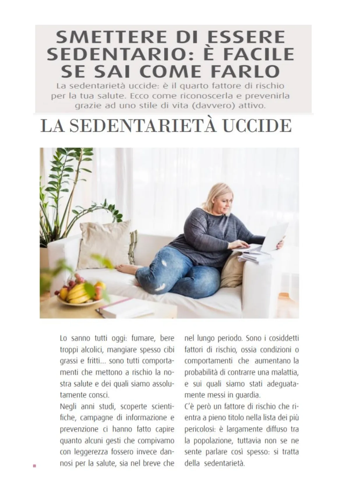 C'è però un fattore di rischio che ri- entra a pieno titolo nella lista dei più pericolosi: è largamente diffuso tra la popolazione, tuttavia non se ne sente parlare così spesso: si tratta della sedentarietà.