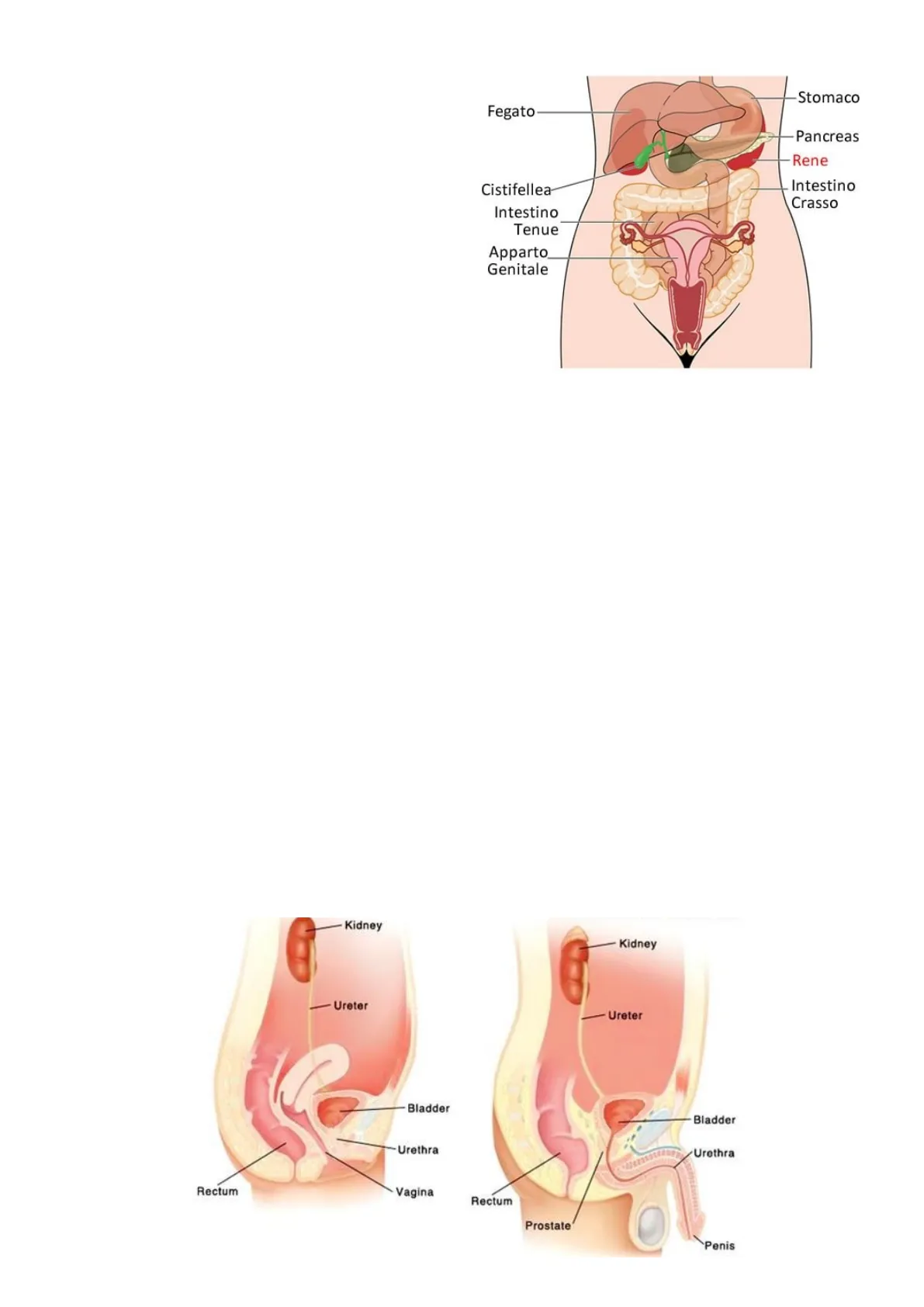 => Le vie urinarie iniziano in corrispondenza del rene e continuano negli ureteri