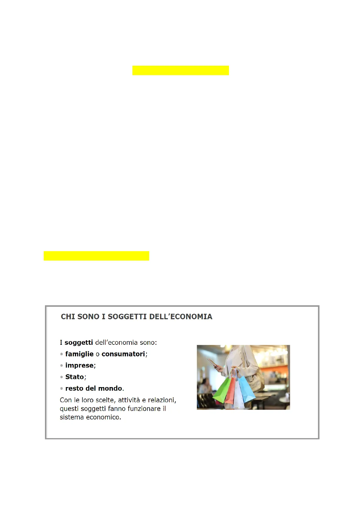 Con le loro scelte, attività e relazioni, questi soggetti fanno funzionare il sistema economico.SOGGETTI DELL'ECONOMIA: dall'insieme dei soggetti economici e delle relazioni che intercorrono tra loro nascono sistemi economici differenti.