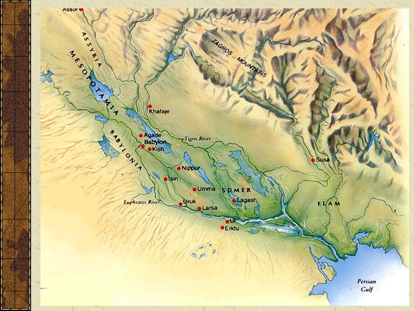 La Civiltà dei Sumeri I-AŞŞUI ASSYRIA ZAGROS MOUNTAINS MESOPOTAMIA Khalaje BABYLONIA Agade Babylon -Tigris River DKish Susà ·Nippur olsin Umma SUMER Euphrates River Uruk · Lagash ELAM ·Larsa ·Endu Persian GulfIl termine Sumero è in realtà il nome dato agli antichi abitanti della Mesopotamia dai loro successori, il popolo semitico degli Accadi. I Sumeri, (o Shumeri da Shumer) infatti, chiamavano se stessi sag-giga, letteralmente "la gente dalla testa nera" e la loro terra Ki-en-gi, "luogo dei signori civilizzati" o secondo altri autori "luogo della lingua sumera". La parola accadica Šumer (Sumer) utilizzata per indicare la terra dei Sumeri rappresenta, forse, questa parola sumerica in dialetto, ma non è comunque noto perché gli Accadi abbiano chiamato questa terra Šumer. Il biblico Shinar, l'egiziano Sngr e l'ittito Šanhar(a) potrebbero essere delle varianti occidentali per la parola Šumer. La Bibbia dei Settanta a sua volta rende il nome Shinar come Sennaar in greco.