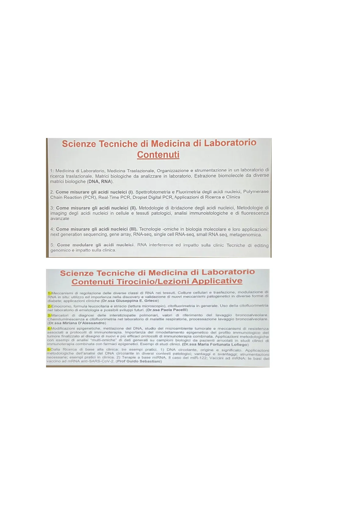 In questo corso si parlerà del link che c'è tra la medicina traslazionale e la medicina di laboratorio, ovvero tutto quello che accade nel laboratorio di ricerca di base e che può essere traslato a livello clinico.