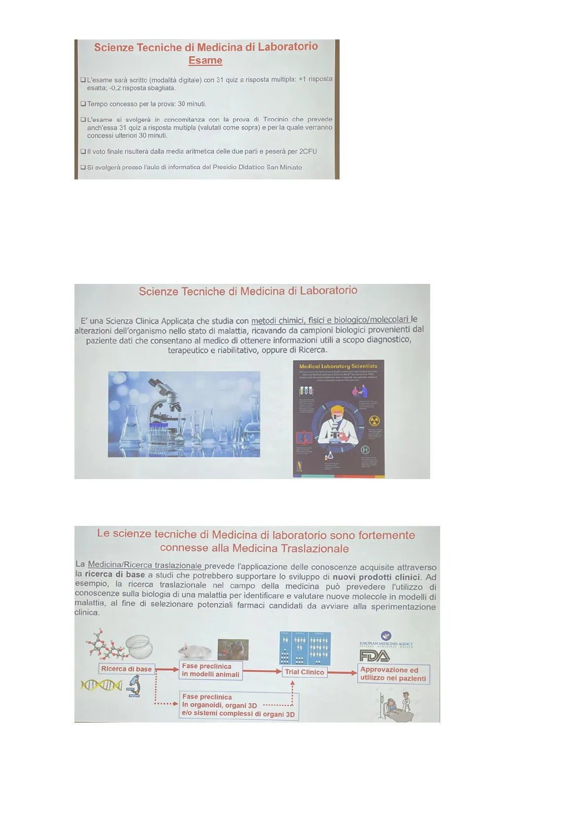 Documento da C.i. Medicina di Laboratorio. Prof. Sebastiani su Medicina di Laboratorio: tecniche di analisi e strumentazioni. Il Pdf, utile per l'Università in Biologia, descrive la medicina traslazionale, le tecniche di misurazione degli acidi nucleici e le strumentazioni di laboratorio.