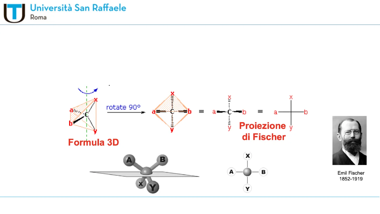 La proiezione di Fischer è un modo convenzionale di rappresentare su un piano la struttura tridimensionale di una molecola chirale.