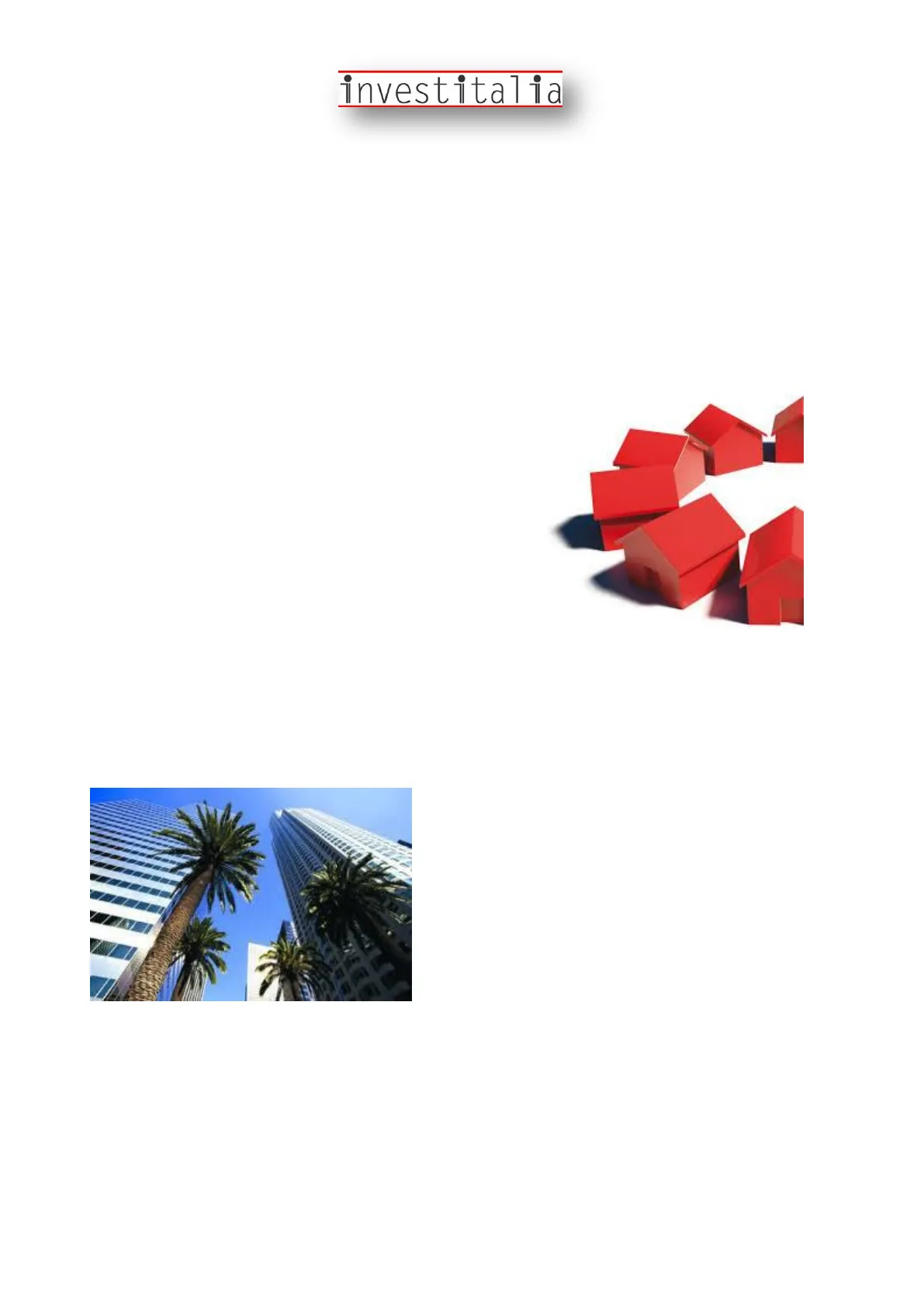 Per questa ragione i prodotti d'investimento INVESTITALIA, anche nel settore immobiliare, oltre a rendite di tutto rispetto, offrono analisi di mercato aggiornate, ma soprattutto un monitoraggio in tempo reale dei fondamentali dell'investimento, alla stregua di qualsiasi altro prodotto borsistico.investitalia