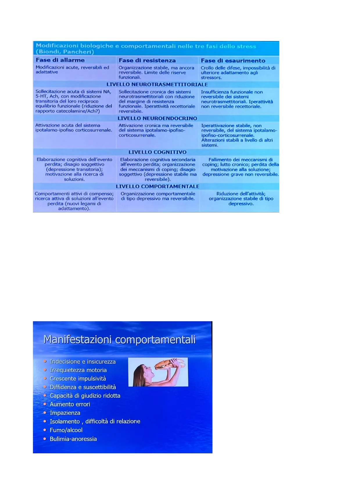 Attivazione acuta del sistema ipotalamo-ipofiso corticosurrenale. Attivazione cronica ma reversibile del sistema ipotalamo-ipofiso- corticosurrenale. Iperattivazione stabile, non reversibile, del sistema ipotalamo- ipofiso-corticosurrenale. Alterazioni stabili a livello di altri sistemi.
