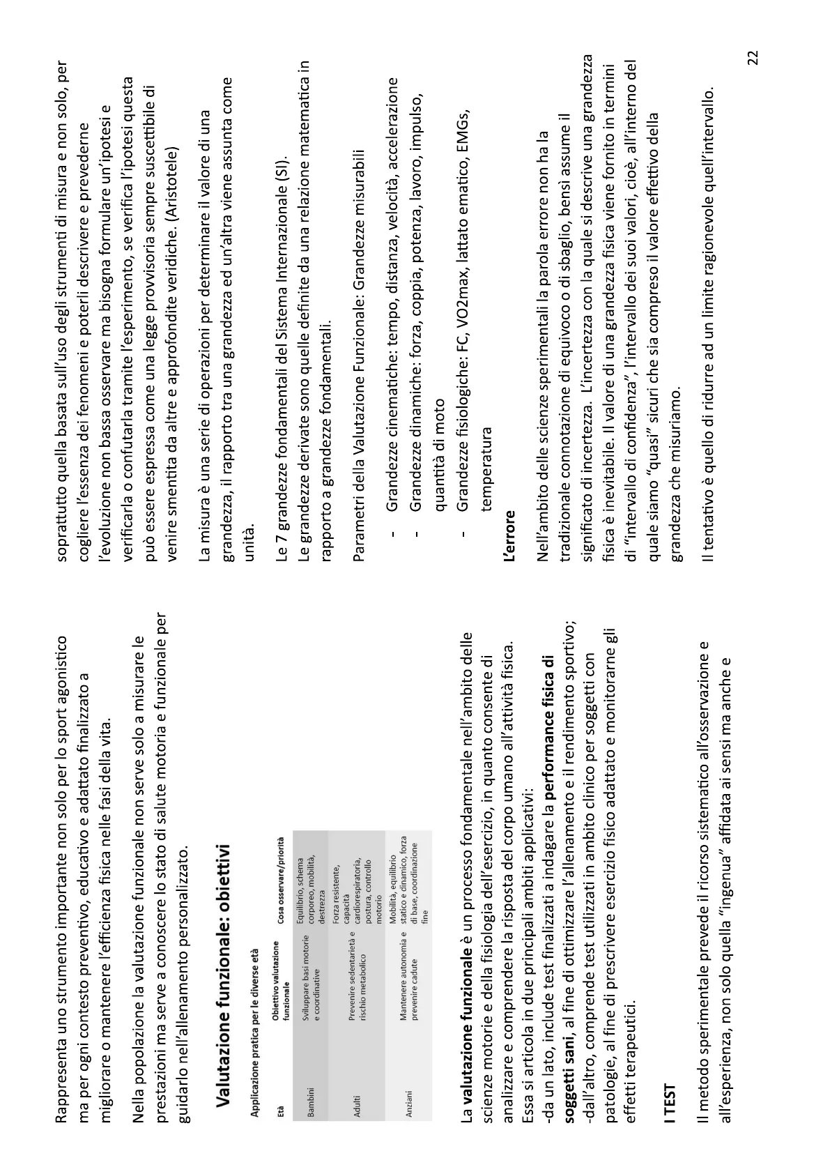 21Rappresenta uno strumento importante non solo per lo sport agonistico ma per ogni contesto preventivo, educativo e adattato finalizzato a migliorare o mantenere l'efficienza fisica nelle fasi della vita. Nella popolazione la valutazione funzionale non serve solo a misurare le prestazioni ma serve a conoscere lo stato di salute motoria e funzionale per guidarlo nell'allenamento personalizzato.