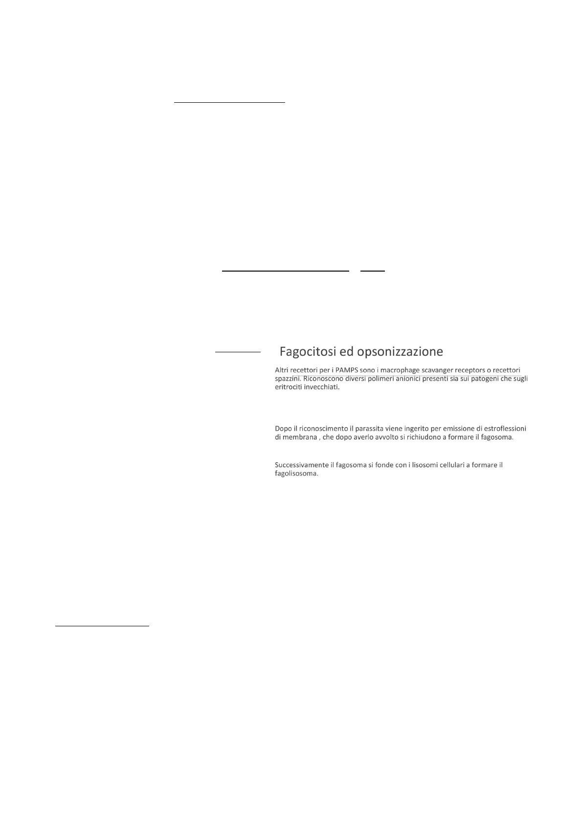 Altri recettori per i PAMPS sono i macrophage scavanger receptors o recettori spazzini. Riconoscono diversi polimeri anionici presenti sia sui patogeni che sugli eritrociti invecchiati. Dopo il riconoscimento il parassita viene ingerito per emissione di estroflessioni di membrana , che dopo averlo avvolto si richiudono a formare il fagosoma. Successivamente il fagosoma si fonde con i lisosomi cellulari a formare il fagolisosoma. Altri recettori per i PAMPs sono i "Macrophage Scavenger Receptors" o recettori spazzini in grado di riconoscere polimeri anionici presenti sia sulla superficie dei patogeni che sulle cellule invecchiate come gli eritrociti. Dopo aver riconosciuto il parassita o l'eritrocita invecchiato, facilitano la fagocitosi di queste strutture. Successivamente il fagosoma si fonde coi lisosomi formando il fagolisosoma. La fagocitosi è una delle attività centrali che si attivano nell'immunità innata, soprattutto l'attivazione di macrofagi e neutrofili per fagocitare ed eliminare i batteri extracellulari che sono più piccoli dei fagociti. 2Per i virus invece funzionano meglio linfociti T citotossici e linfociti NK perché i virus sopravvivono dentro le nostre cellule e quindi saranno queste cellule che riescono a distruggere la cellula infettata.