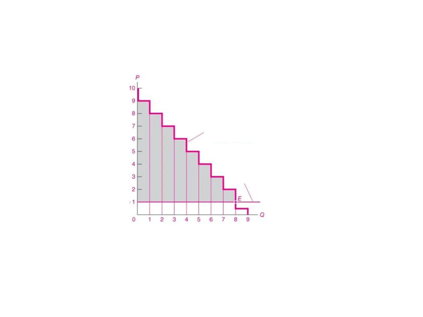 P Prezzo che il consumatore è disposto a pagare per un brick 101 9 8 - 7 Domanda del consumatore 6 5 Prezzo di mercato di un brick (euro/brick) E 1 Q 0 1 2 3 4 5 6 7 8 9 Brick di succhi di frutta 2