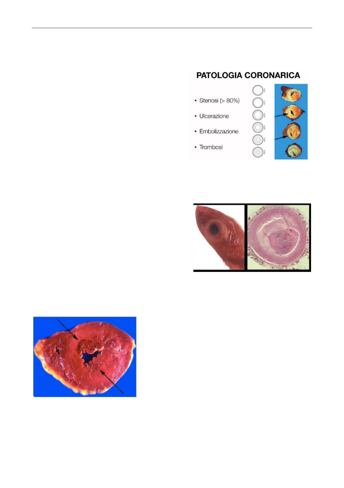 La patologia coronarica può presentarsi nelle seguenti modalità (vedi immagine a lato): PATOLOGIA CORONARICA Se la patologia coronarica avviene in acuto, il cuore non riesce ad attivare i meccanismi di compenso; se invece si instaura lentamente, all'autopsia si potrà comunque trovare una coronaria completamente occlusa, ma la formazione di un importante circolo collaterale ha evitato che fosse quest'ultima la causa del decesso.