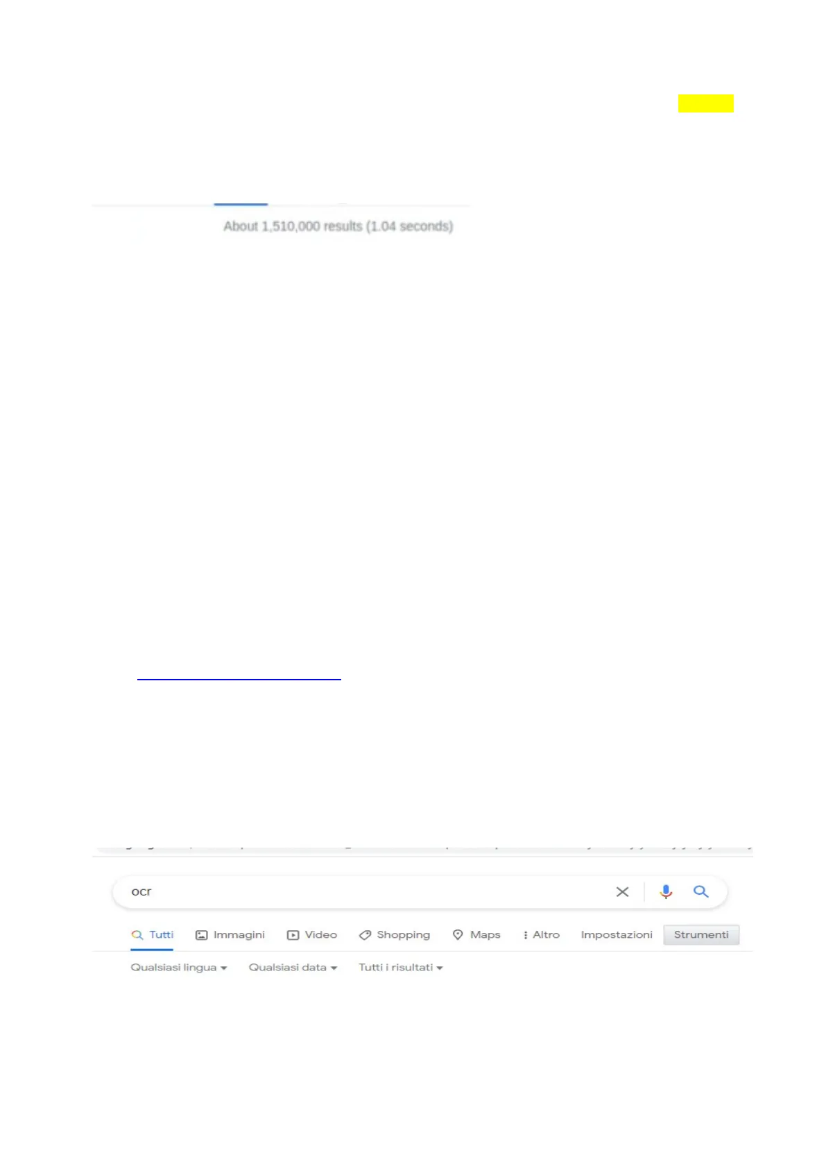 Un'altra possibilità è limitare la ricerca attraverso la barra degli strumenti su google ocr × a Q Tutti Immagini Video 0 Shopping Maps : Altro Impostazioni Strumenti Qualsiasi lingua v Qualsiasi data v Tutti i risultati v Document shared on https://www.docsity.com/it/linguistica-computazionale-da-ocr-a-bibliografia/7658543/ Downloaded by: oscarlogoteta (oscarlogoteta@gmail.com)