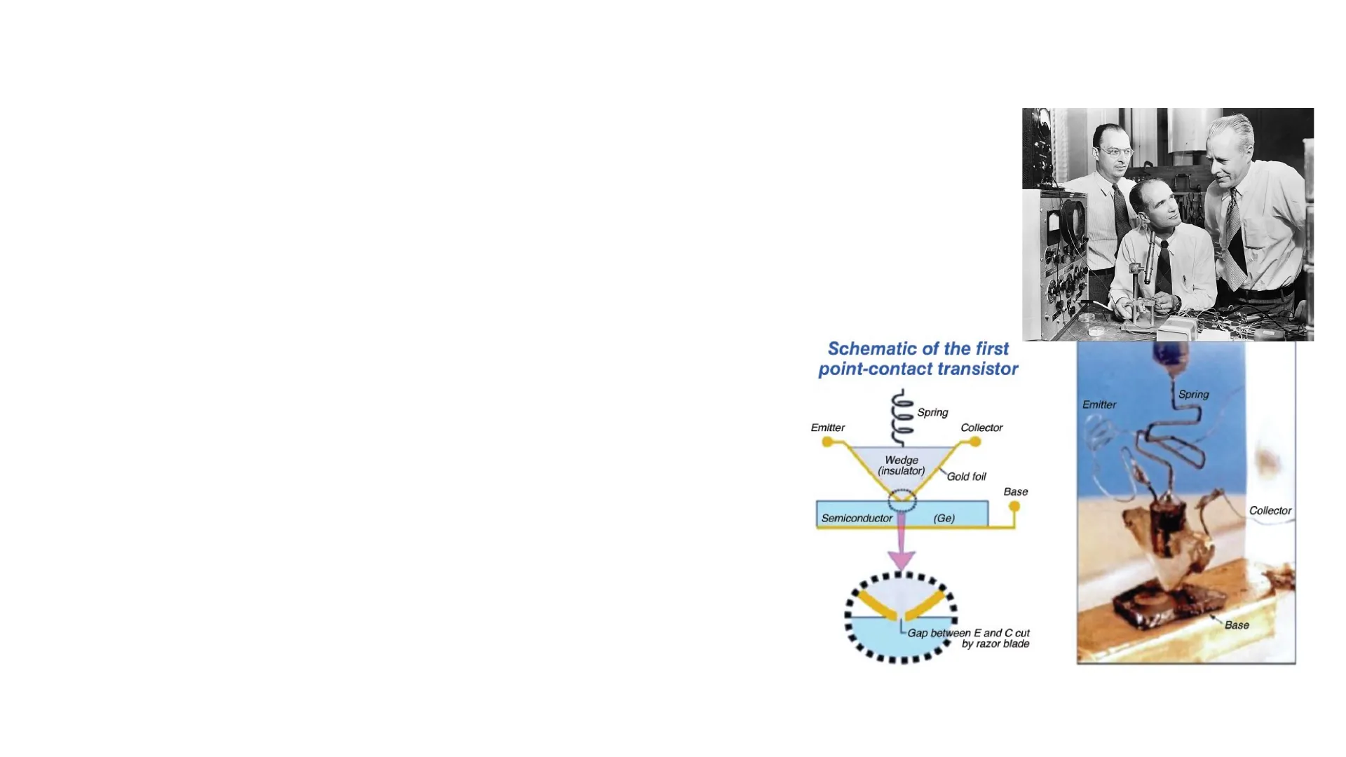 1st transistor (Bell Lab, 1947): A plastic wedge secured two gold
