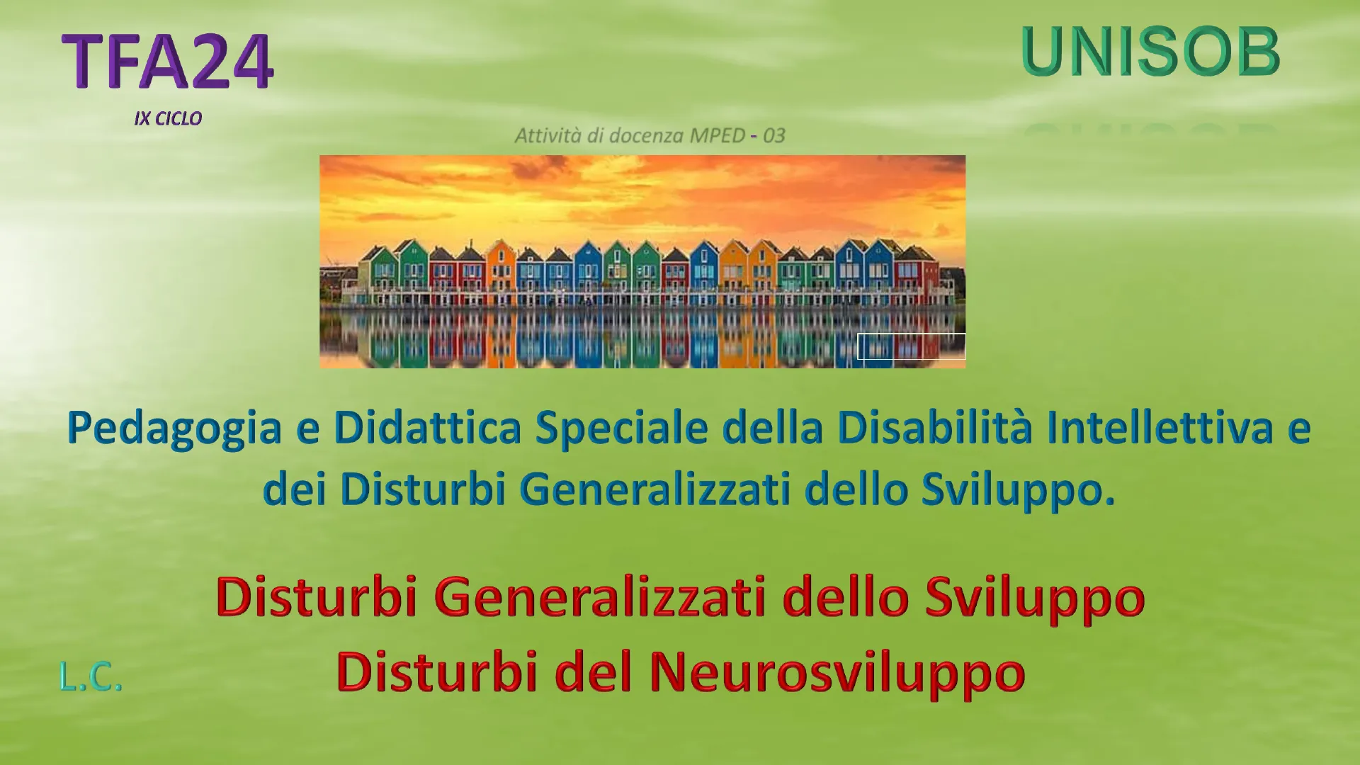 TFA24 IX CICLO Corsi di formazione per il conseguimento della specializzazione per le attività di sostegno UNISOB Attività di docenza MPED - 03 Houten (Olanda) Pedagogia e Didattica Speciale della Disabilità Intellettiva e dei Disturbi Generalizzati dello Sviluppo. Disturbi Generalizzati dello Sviluppo Disturbi del Neurosviluppo L.C.