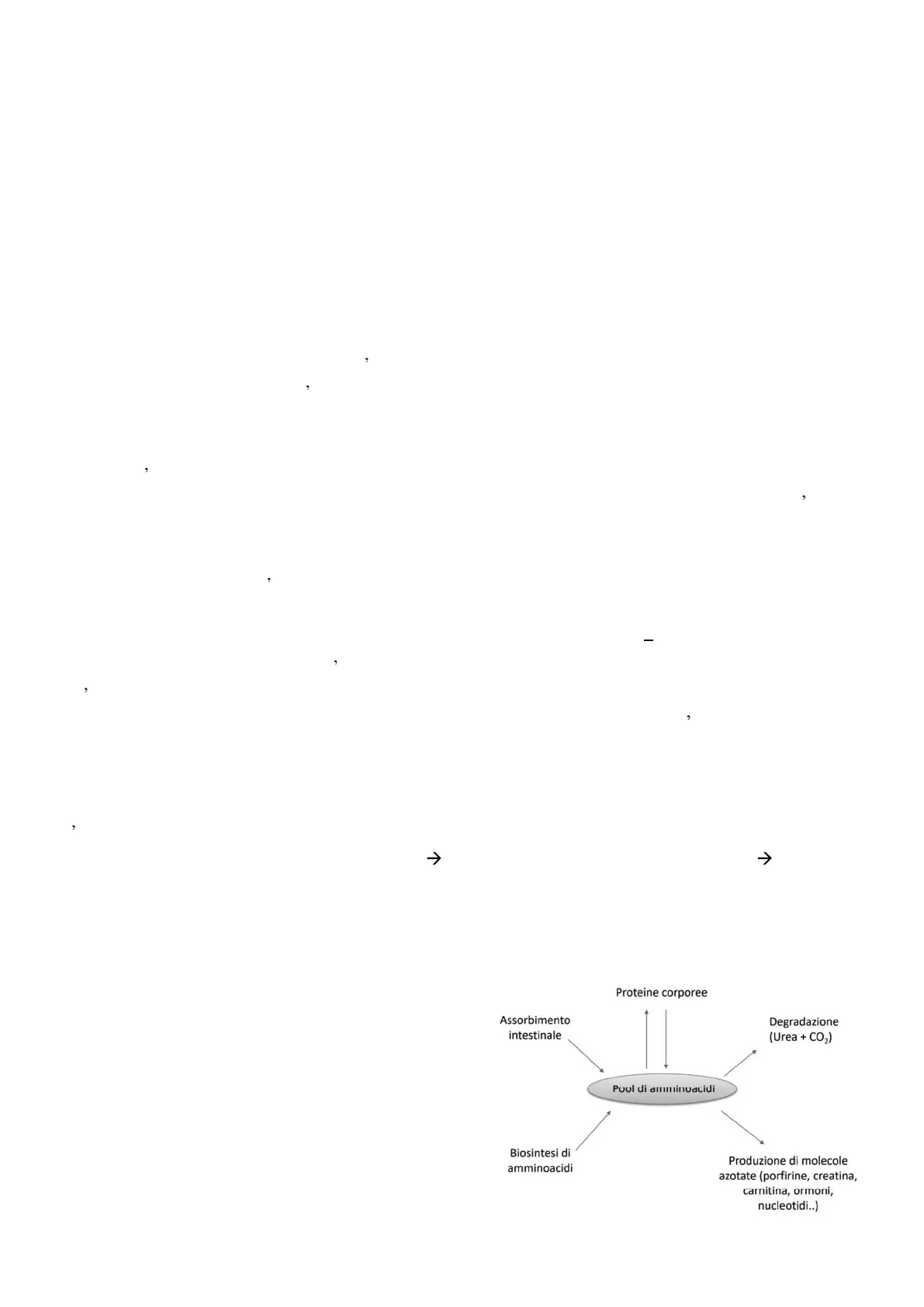Le proteine assunte con la dieta non vengono immagazzinate ma vengono degradate a costituire il pool di aminoacidi liberi per la sintesi di altre proteine o composti azotati oppure vengono degradati a scopi energetici.