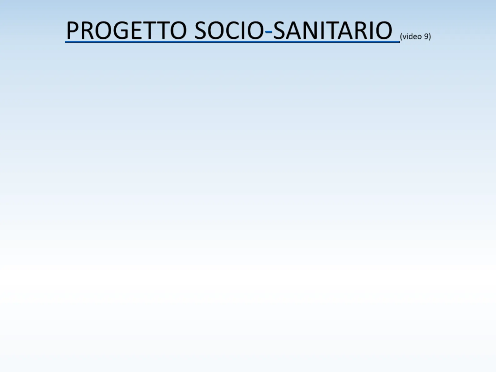 (video 9) In ambito sociale, per fronteggiare situazioni complesse con un alto grado di disfunzionalità sociale o sanitaria, si lavora mediante progetti. Il progetto individuale è un insieme di procedure e attività da svolgere entro un arco di tempo definito per ottenere un miglioramento di una situazione problematica individuale o di gruppo