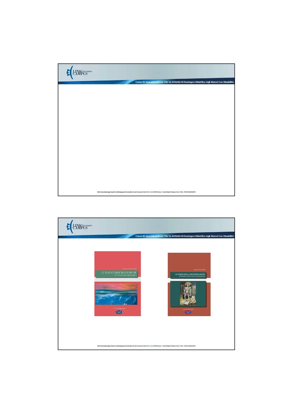 13 di 38 · Università degli studi Link Campus University Via del Casale di San Pio V. 4 00165 Roma - Italia Email info@unilink.it Tel. +39 05 94802270 LINK UNIVERSITY CAMPUS Pedagogia speciale della gestione integrata del gruppo classe Corso Di Specializzazione Per Le Attività Di Sostegno Didattico Agli Alunni Con Disabilità