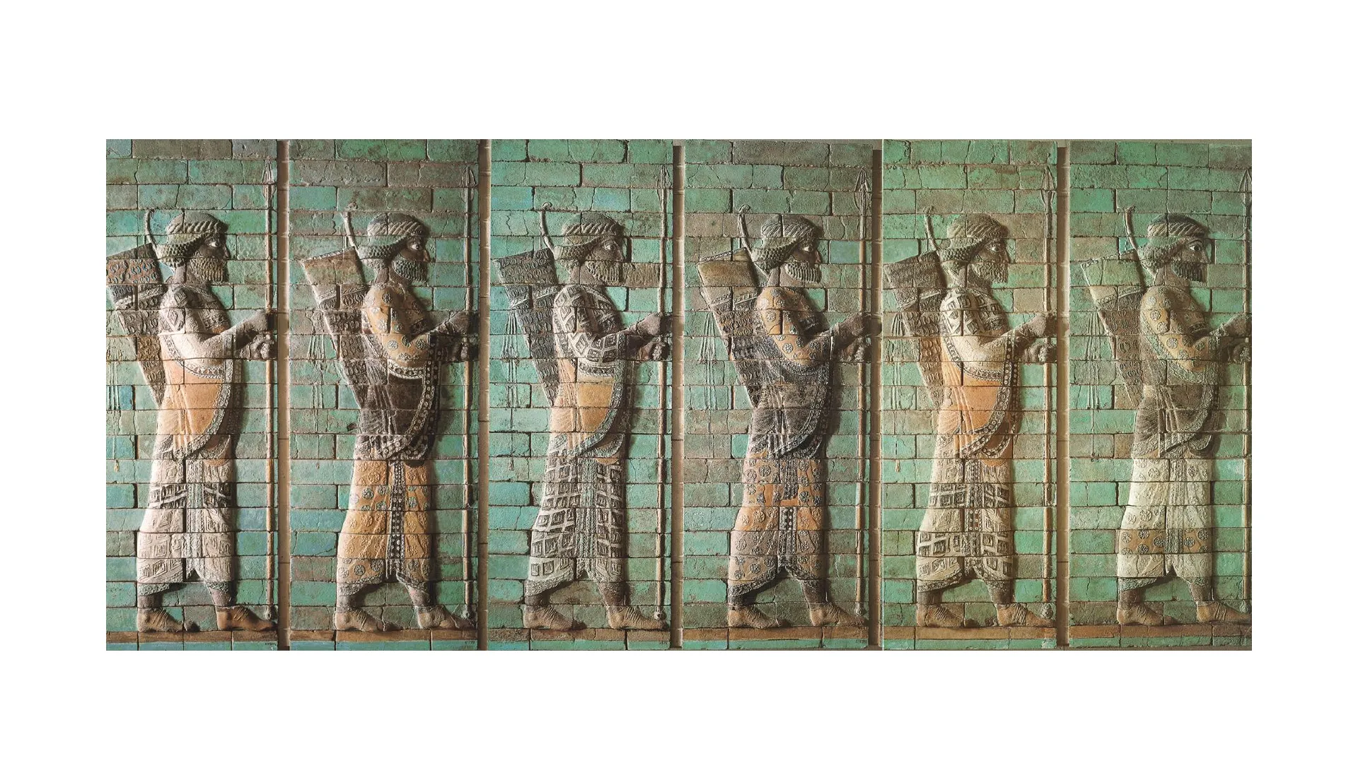 Un bassorilievo della fine del VI secolo a.C., proveniente dal palazzo di Susa. Raffigura gli "Immortali", un corpo scelto dell'esercito persiano istituito da Ciro il Grande.Chi sono i Persiani? Popolato fin dal IX secolo a.C., il territorio dell'attuale Iran era abitato da popolazioni indoeuropee che riuscirono ad assimilare i popoli precedentemente stanziati sul territorio, dividendosi poi in due gruppi principali: i Medi e i Persiani, entrambi organizzati in tribù. Verso la metà del VI secolo a.C. i Persiani strapparono il potere ai Medi e crearono un potente Impero. Fondato da Ciro il Grande, capostipite della dinastia degli Achemenidi, l'Impero persiano in poco tempo sottomise il regno di Lidia, l'Impero babilonese, la Siria, la Fenicia e la Palestina. L'anfora, realizzata intorno al 490 a.C., raffigura il re di Lidia, Creso, sul rogo, insieme a un servo che appicca il fuoco. Lo storico Erodoto racconta come Ciro decise all'ultimo di salvare Creso dal rogo, facendolo diventare un suo consigliere.