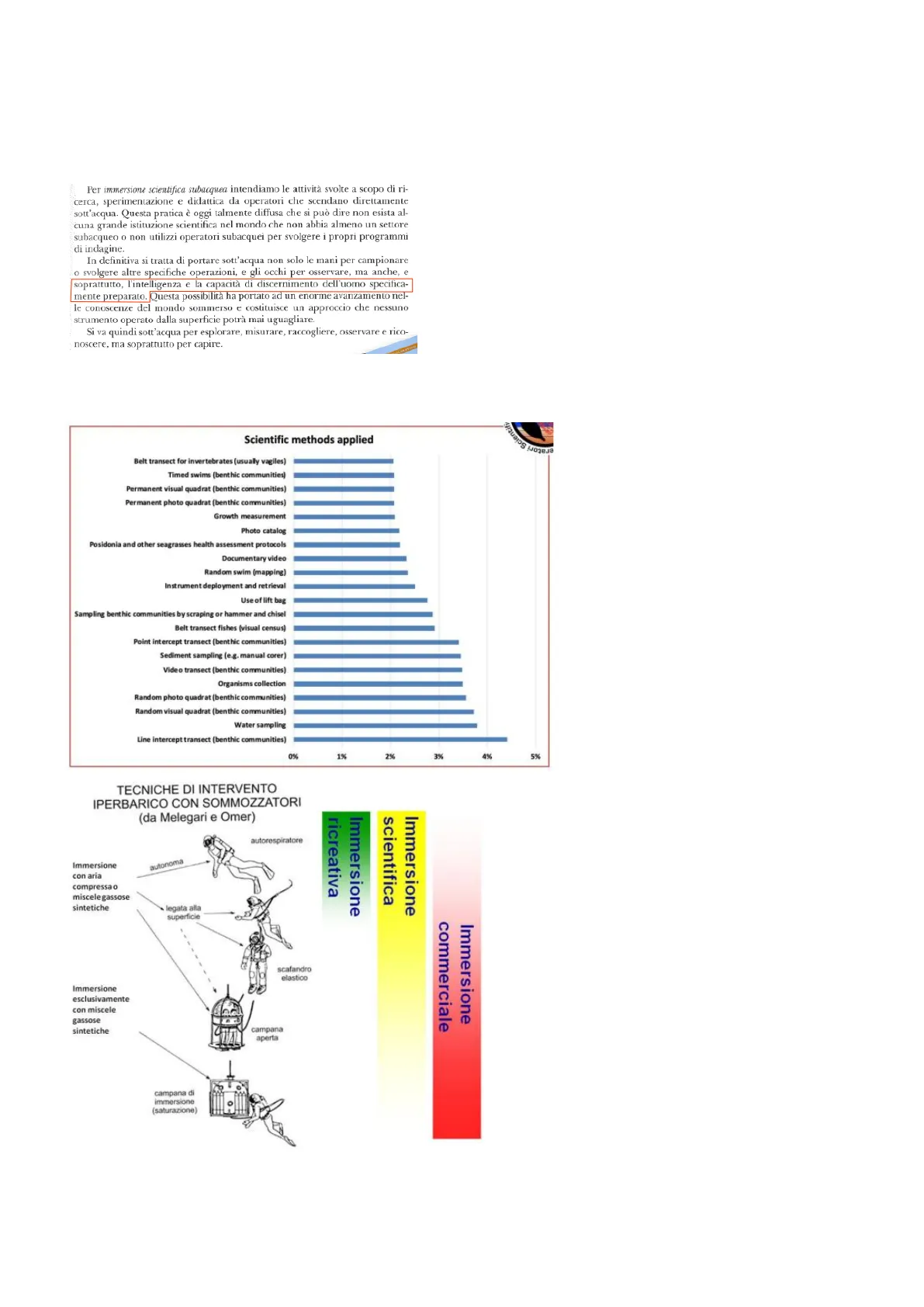 0% 1% 2% 3% 4% 5% I metodi scientifici più utilizzati durante le immersioni sono: transetti subacquei per studiare le comunità bentoniche, campioni d'acqua, utilizzo di quadrati anche fotografici.