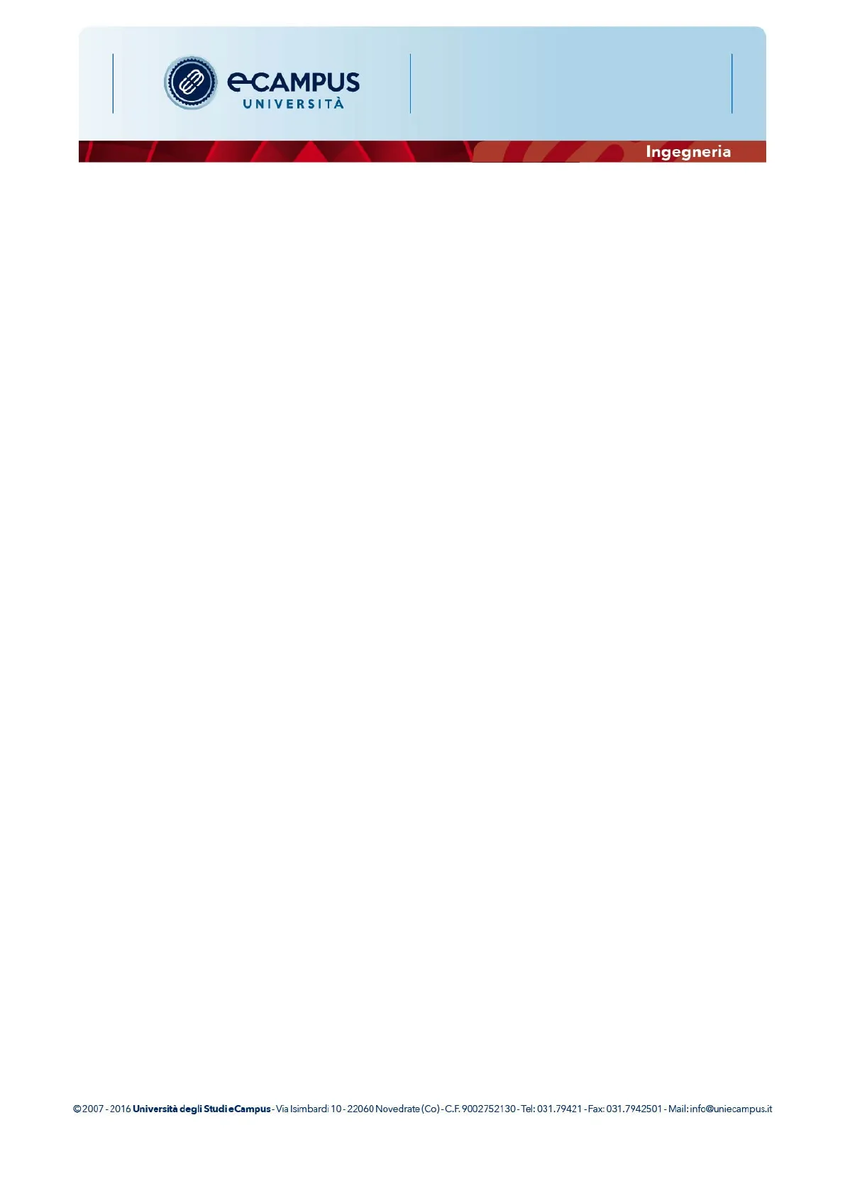 C 2007 - 2016 Università degli Studi eCampus - Via Isimbardi 10 - 22060 Novedrate (Co)- C.F. 9002752130 - Tel: 031.79421 - Fax: 031.7942501 - Mail: info@uniecampus.it 10