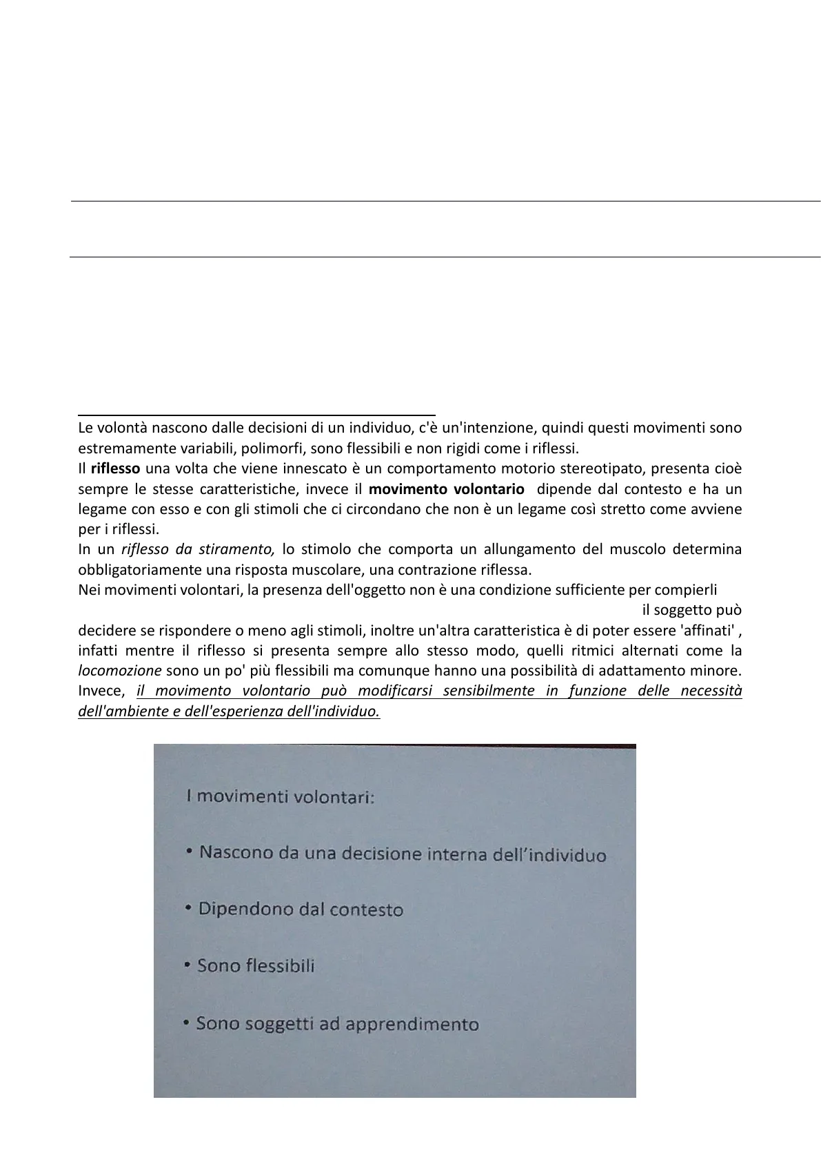 Cosa caratterizza allora questi movimenti volontari? Le volontà nascono dalle decisioni di un individuo, c'è un'intenzione, quindi questi movimenti sono estremamente variabili, polimorfi, sono flessibili e non rigidi come i riflessi.