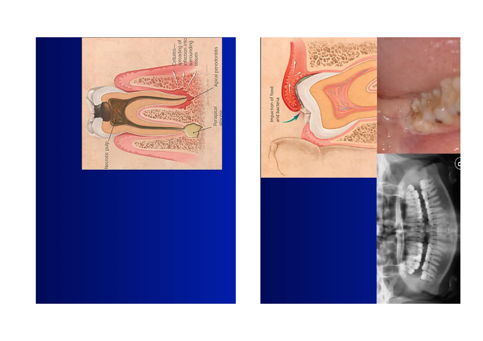 Necrotic pulp Cellulitis- spreading of infection into surrounding tissues Stacey Periapical abscess Apical periodontitis