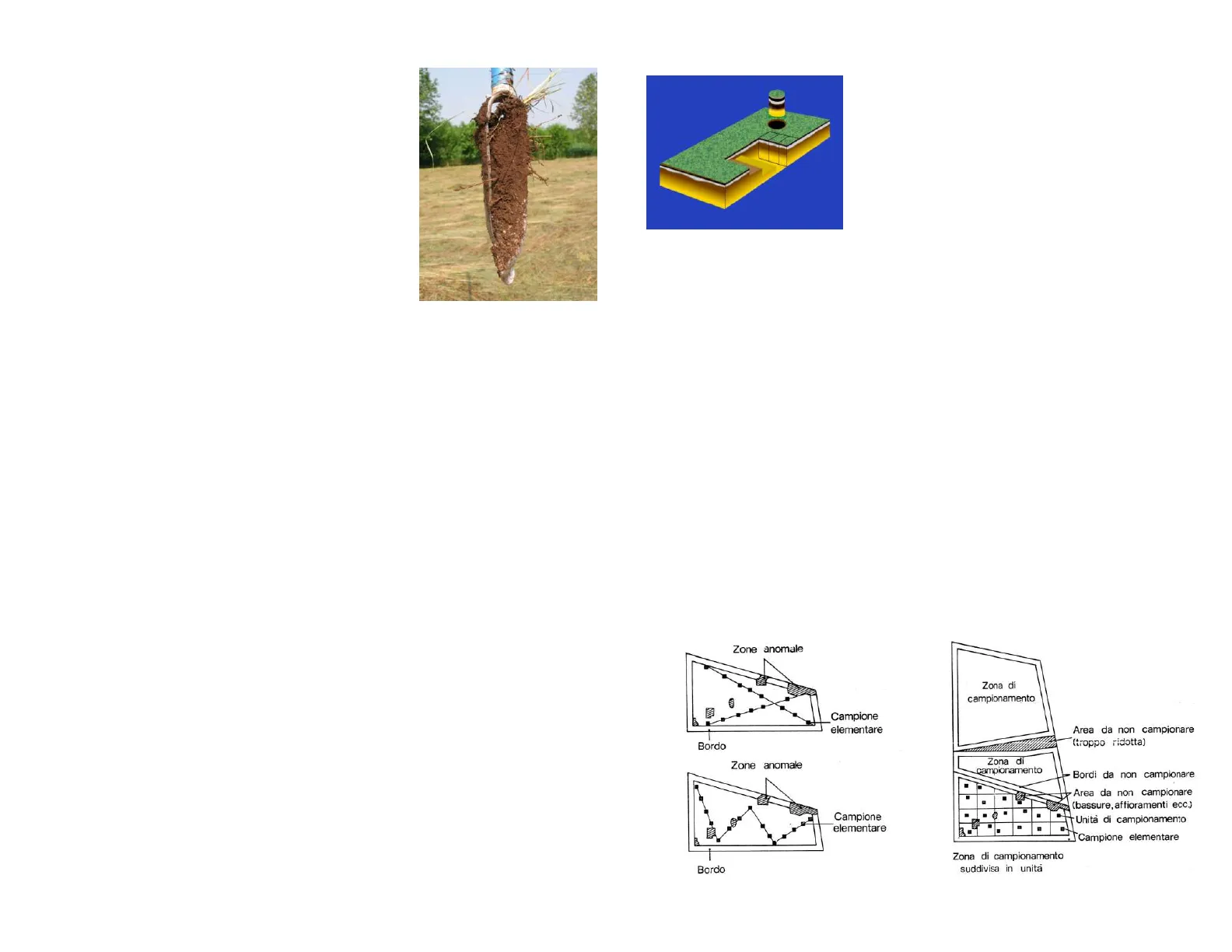 Zone anomale Campione elementare Bordo Zone anomale Campione elementare Bordo Zona di campionamento Area da non campionare (troppo ridotta) Zona di campionamento Bordi da non campionare . Area da non campionare und (bassure, affioramenti ecc) Unità di campionamento Campione elementare Zona di campionamento suddivisa in unita