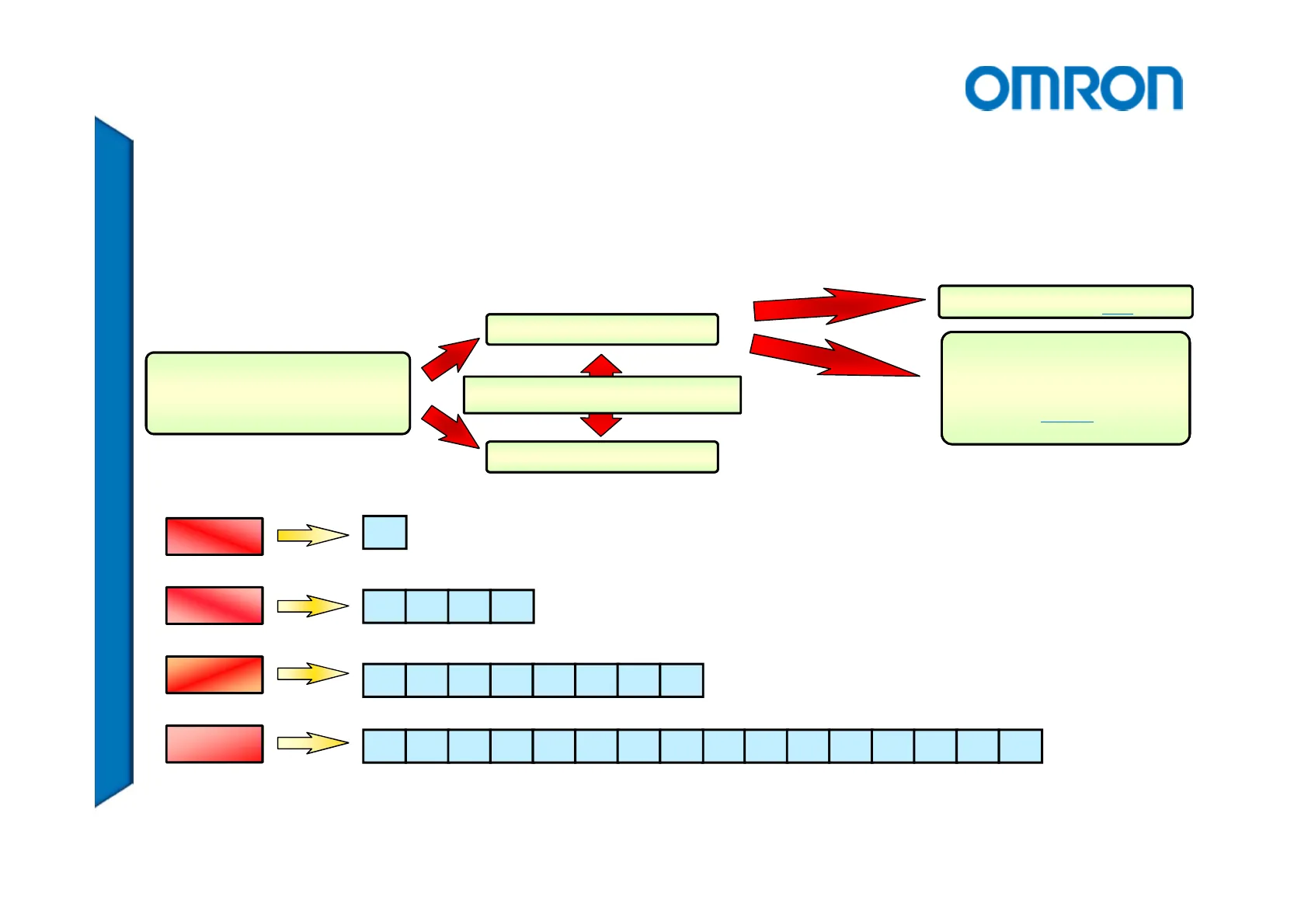 OMRON · L'area di memoria è una serie di celle consecutive, ognuna della quale è composta da 16 bit · Gli indirizzamenti sulla memoria dei PLC possono essere fatti a canale o a bit