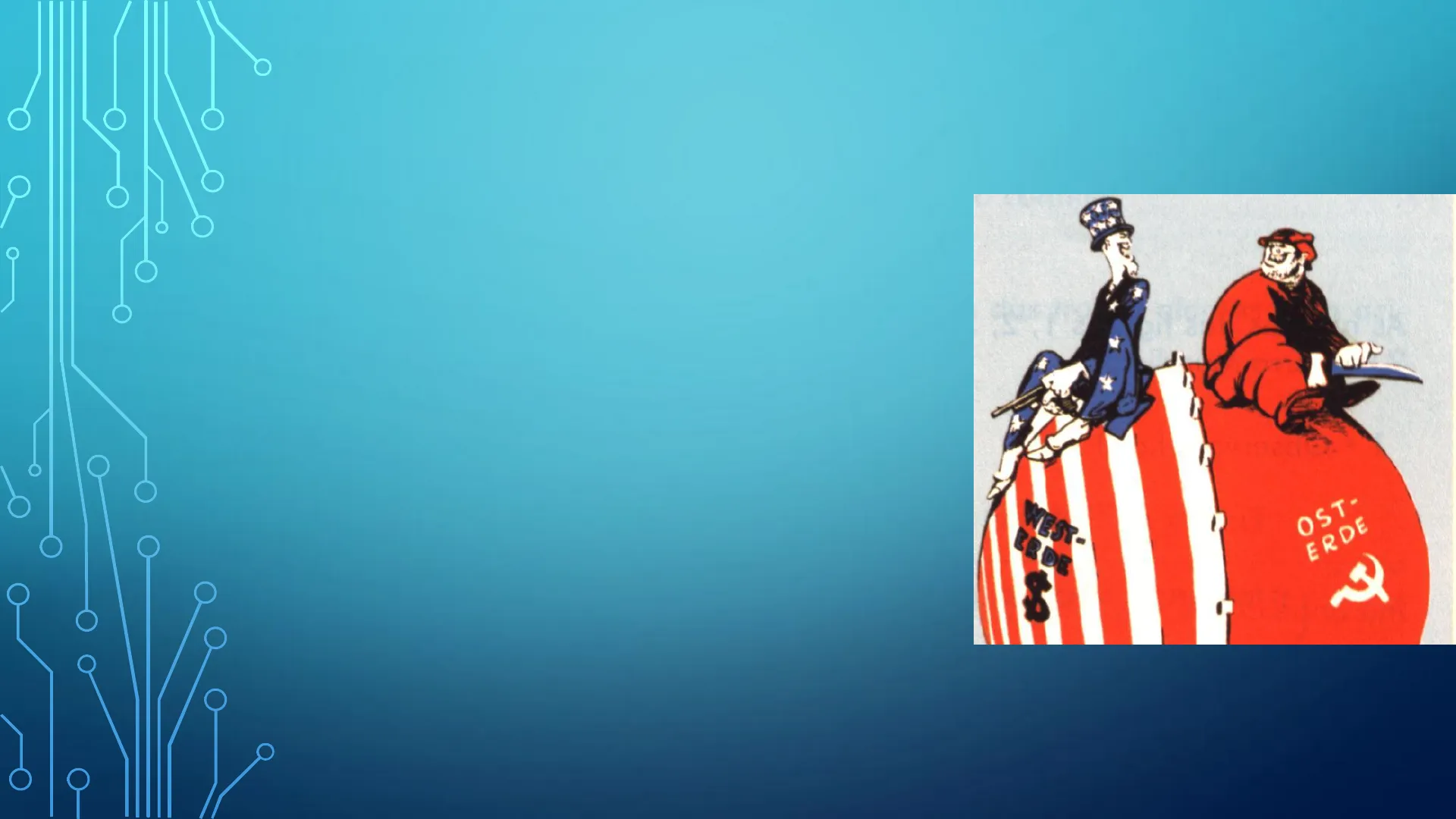 LA GUERRA FREDDA IL MONDO DIVISO IN DUE I CONFLITTI DELLA GUERRA FREDDA WEST- ERDE OST- ERDEIL MONDO IN DUE BLOCCHI La cortina di ferro in Europa Il termine "cortina di ferro" fu coniato da Winston Churchill nel 1946 e sta ad indicare la divisione del mondo in due blocchi contrapposti: quello occidentale, con a capo gli USA e quello orientale, controllato dall'URSS. Ciascun blocco era caratterizzato da modelli sociali ed economici antitetici: il primo democratico, capitalista e legato da un'economia di mercato; il secondo a partito unico, comunista e caratterizzato dalla pianificazione statale.