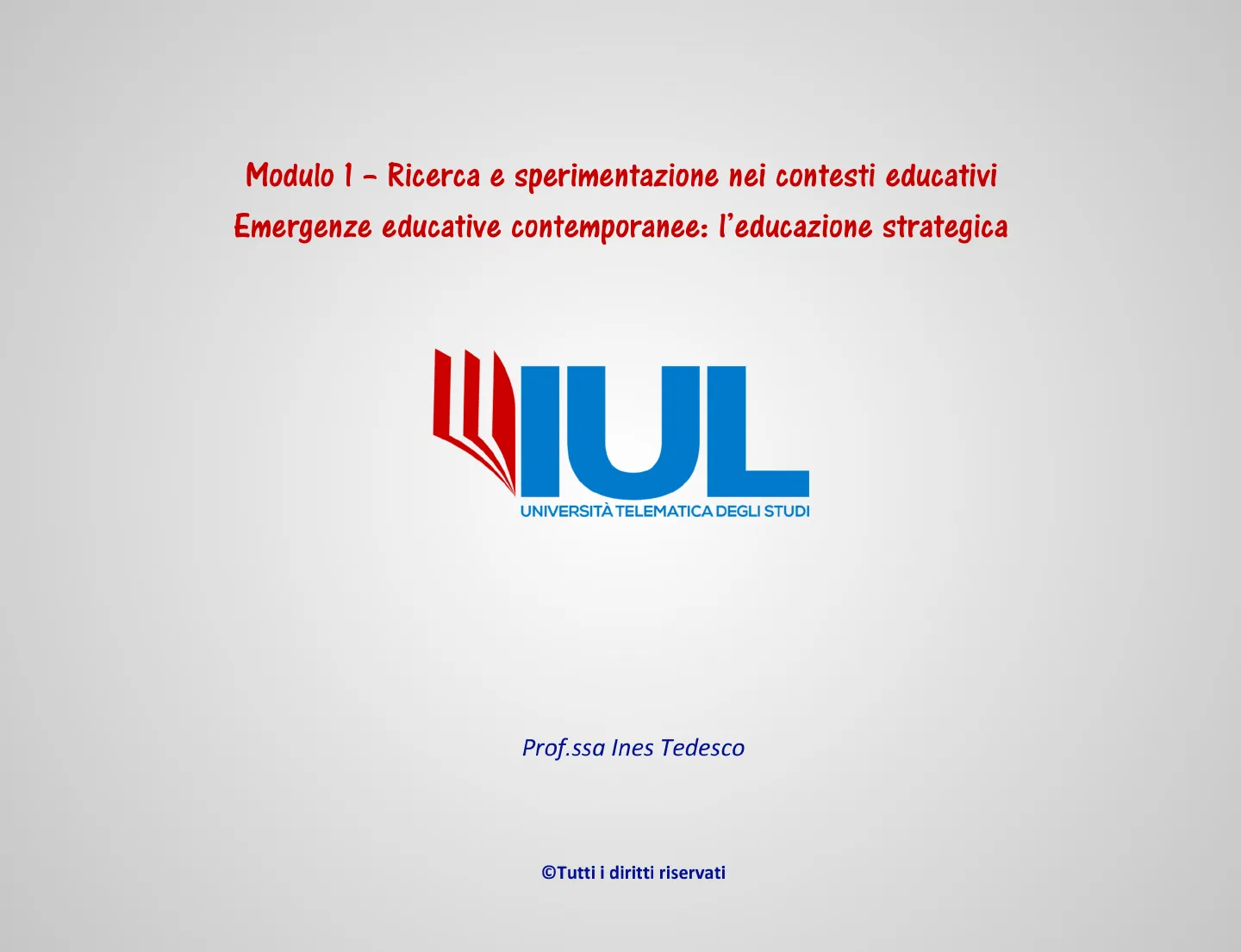 Modulo 1 - Ricerca e sperimentazione nei contesti educativi Emergenze educative contemporanee: l'educazione strategica LIUL UNIVERSITÀ TELEMATICA DEGLI STUDI Prof.ssa Ines Tedesco @Tutti i diritti riservatiLIUL UNIVERSITÀ TELEMATICA DEGLI STUDI