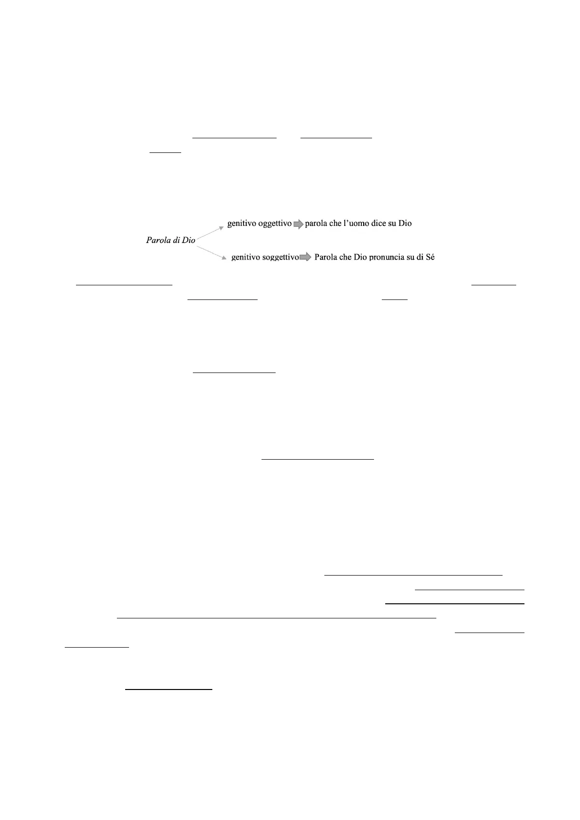 genitivo oggettivo parola che l'uomo dice su Dio Parola di Dio genitivo soggettivo Parola che Dio pronuncia su di Sé . Il primo significato ci riporta all'uso precristiano e pagano del termine "teologia", diffuso ad esempio nel mondo greco. = > Teologi sono detti poeti come Omero, Esiodo o Orfeo, che cantano con i loro poemi le origini del cosmo (Cosmogonie) o degli dei (Teogonie). Teologia viene utilizzato da filosofi come Platone (La Repubblica) e Aristotele (Metafisica) per indicare quella parte della riflessione razionale che si occupa del divino, nell'ambito di una ricerca sui principi primi e il fondamento ultimo di ciò che esiste. Anche nel mondo romano esiste una teologia che non implica alcuna Rivelazione o iniziativa divina, ma rimane nell'ambito di un percorso umano, sia che si tratti di un'attività di carattere poetico (teologia mitica), sia che rientri nell'ambito di un'indagine razionale (teologia naturale), sia che riguardi l'ordinamento della religione all'interno della vita socio- politica (teologia civile).