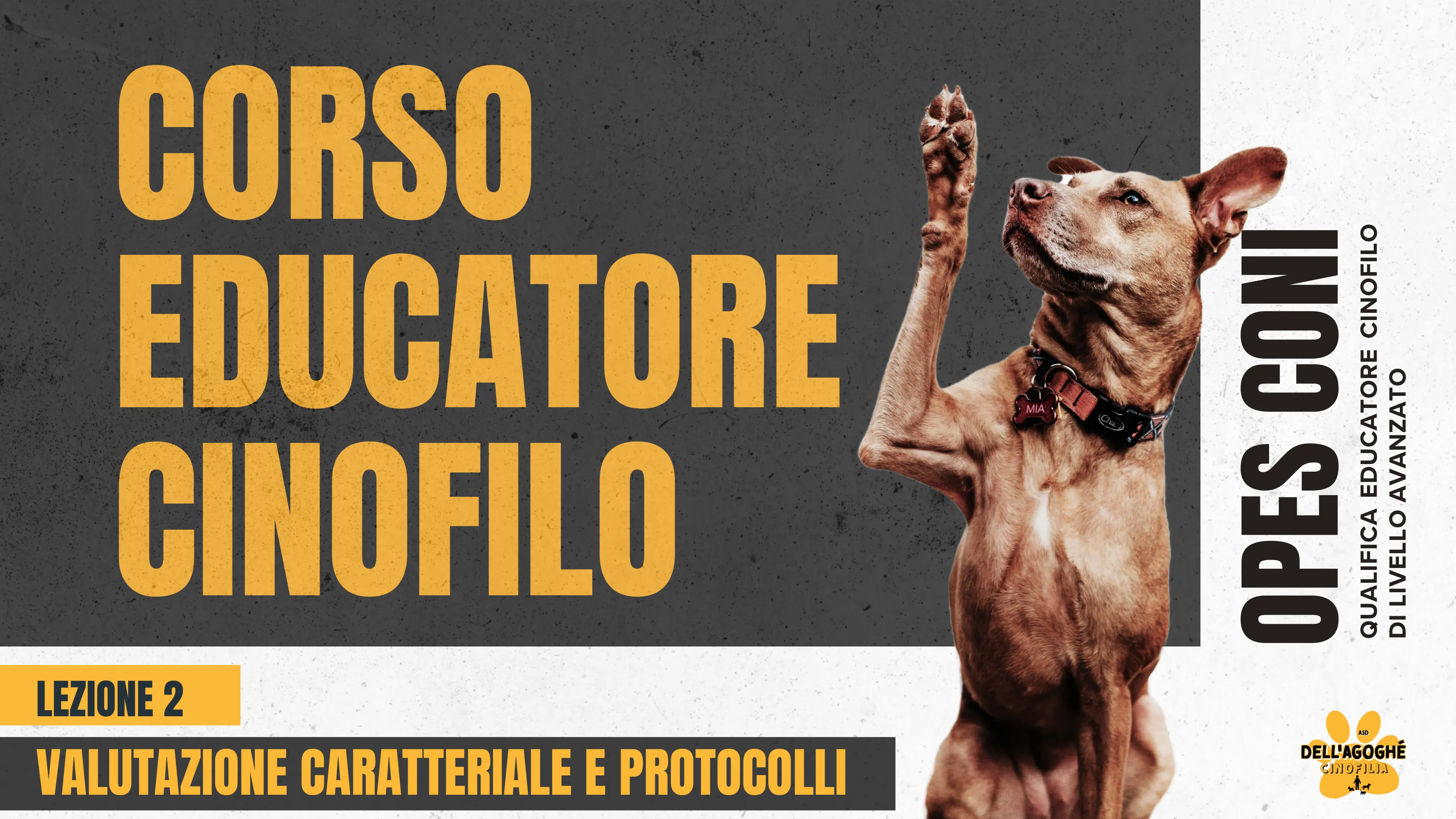CORSO EDUCATORE CINOFILO MIA Vý D OPES CONI QUALIFICA EDUCATORE CINOFILO DI LIVELLO AVANZATO LEZIONE 2 VALUTAZIONE CARATTERIALE E PROTOCOLLI ASD DELL'AGOGHÉ CINOFILIAEDUCARE E ADDESTRARE