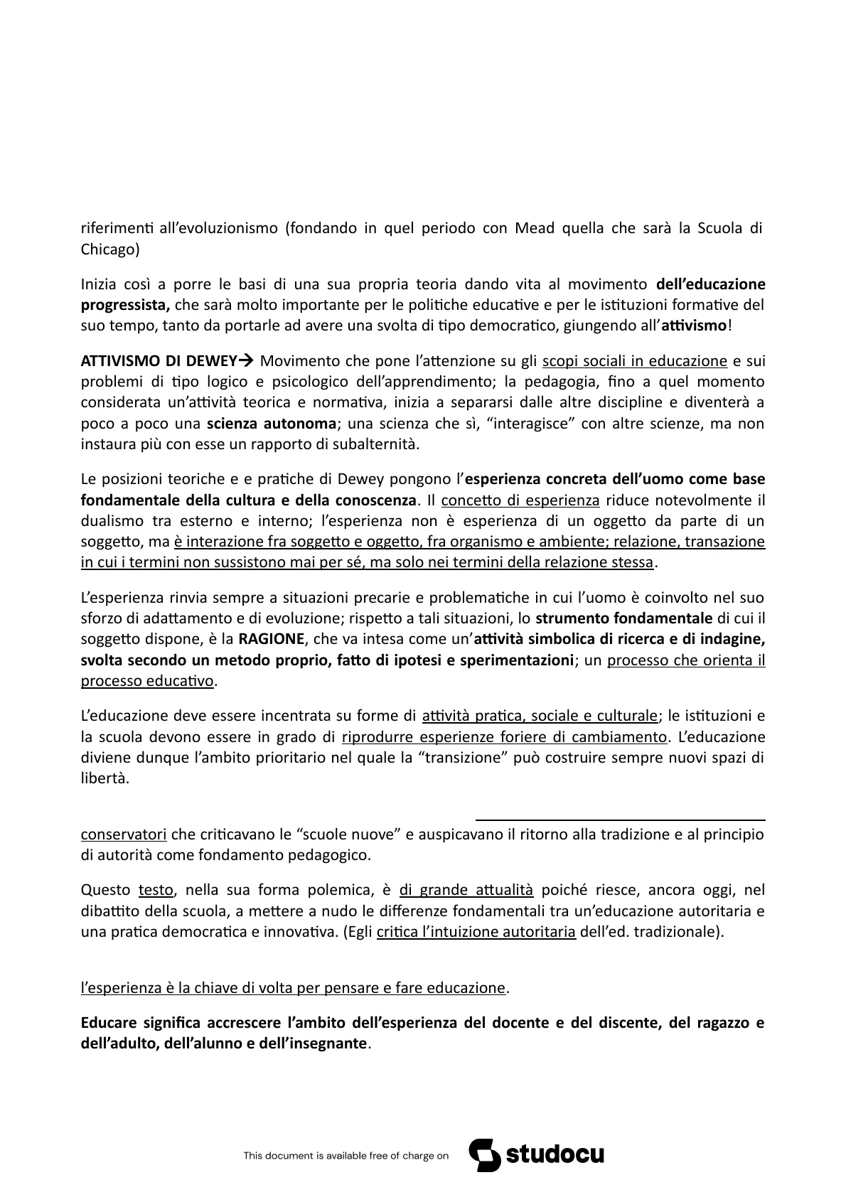 Documento dall'Università degli Studi di Milano-Bicocca su "Esperienza e educazione" di John Dewey. Il Pdf esplora l'attivismo pedagogico, il ruolo dell'esperienza nell'apprendimento e l'organizzazione progressiva della materia di studio, utile per studenti universitari di pedagogia.