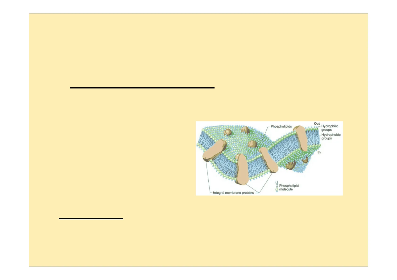 Out -Phospholipids - Hydrophilic groups Hydrophobic groups In Phospholipid molecule Integral membrane proteins
