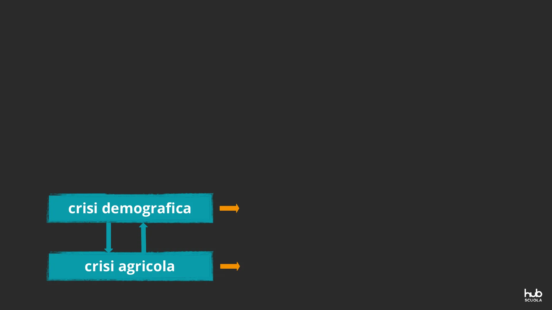 UNA CRISI A TANTI LIVELLI Il XIV secolo si apre con una crisi che ha molte ripercussioni sul piano sociale, politico, culturale. I suoi aspetti fondamentali sono due, legati tra loro: crisi demografica le nascite diminuiscono e le persone che muoiono di fame aumentano crisi agricola la produzione di cereali diminuisce e molti villaggi vengono abbandonati hub SCUOLALA PESTE NERA E LA CRISI DEL TRECENTO / UNA CRISI A TANTI LIVELLI Le cause della crisi sono molteplici e si alimentano a vicenda: