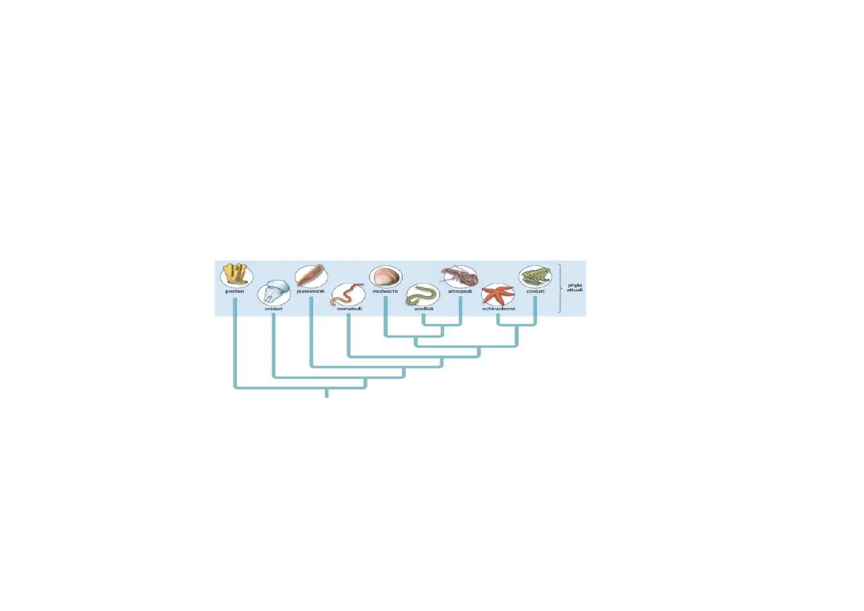 poriferi platelminti 5 molluschi artropodi cordati phyla attuali cnidari nematodi anellidi echinodermi