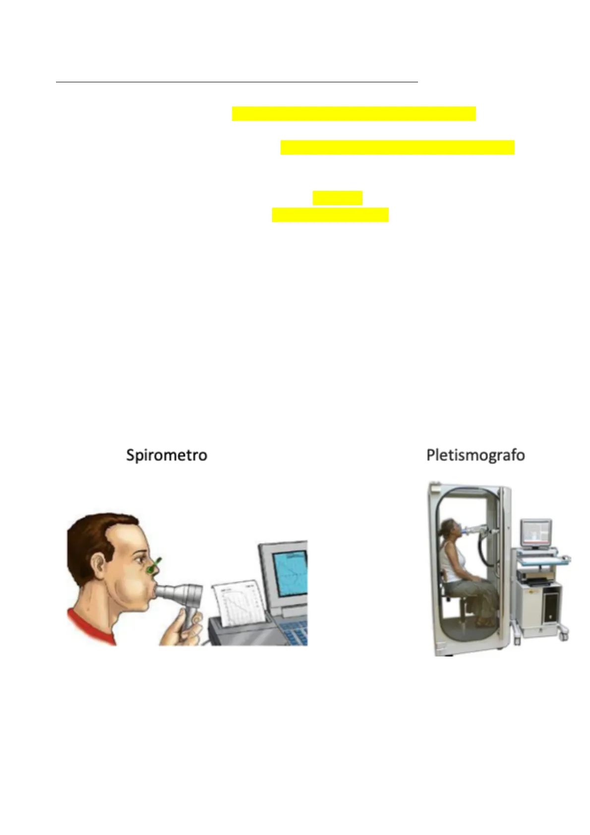 Ci sono vari tipi di spirometro, sostanzialmente è un apparecchio collegato ad un boccaglio in cui si chiede semplicemente al paziente di soffiare aria dentro. Il pletismografo è invece una cabina all'interno della quale si può misurare la capacità polmonare totale perché la cabina è in grado di misurare tutta la sua capacità e di fare un calcolo riuscendo a quantificare anche il volume residuo