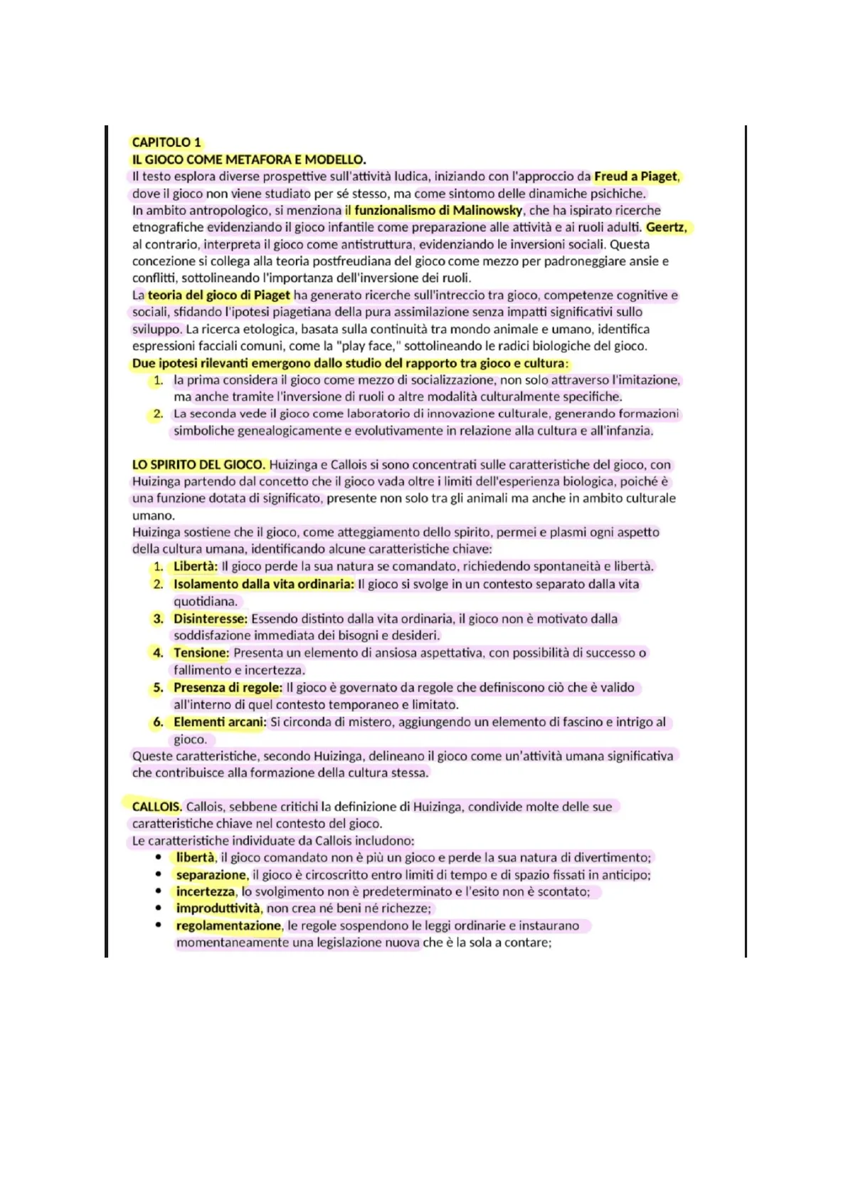 Il testo esplora diverse prospettive sull'attività ludica, iniziando con l'approccio da Freud a Piaget, dove il gioco non viene studiato per sé stesso, ma come sintomo delle dinamiche psichiche. In ambito antropologico, si menziona il funzionalismo di Malinowsky, che ha ispirato ricerche etnografiche evidenziando il gioco infantile come preparazione alle attività e ai ruoli adulti. Geertz, al contrario, interpreta il gioco come antistruttura, evidenziando le inversioni sociali. Questa concezione si collega alla teoria postfreudiana del gioco come mezzo per padroneggiare ansie e conflitti, sottolineando l'importanza dell'inversione dei ruoli.