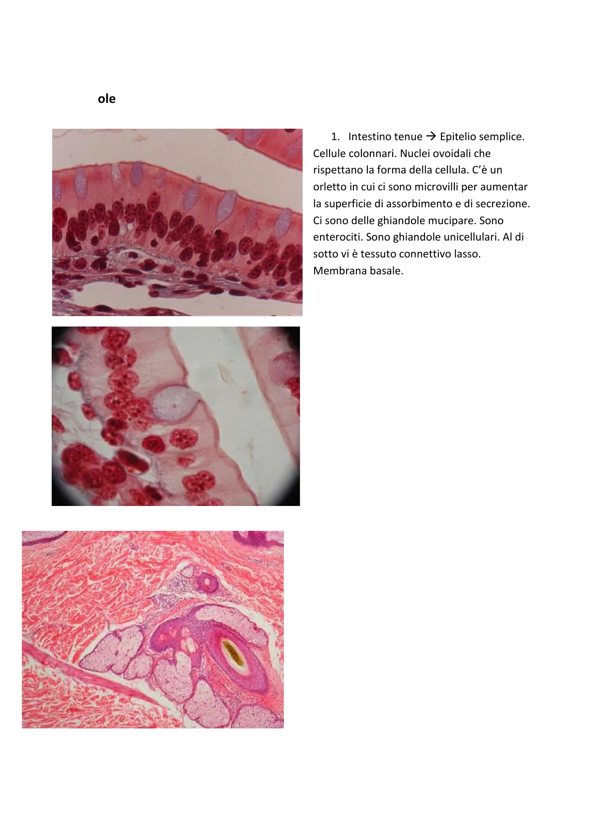 1. Intestino tenue Epitelio semplice.