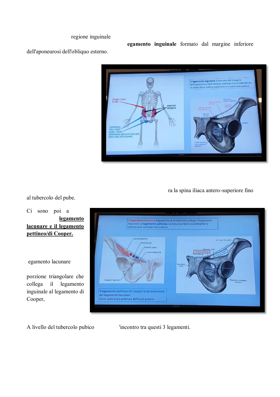 In questo momento a noi interessa l'inserzione inferiore dell'obliquo esterno, che andrà a formare appunto il legamento inguinale. Quest'ultimo va ad estendersi tra la spina iliaca antero-superiore fino al tubercolo del pube.