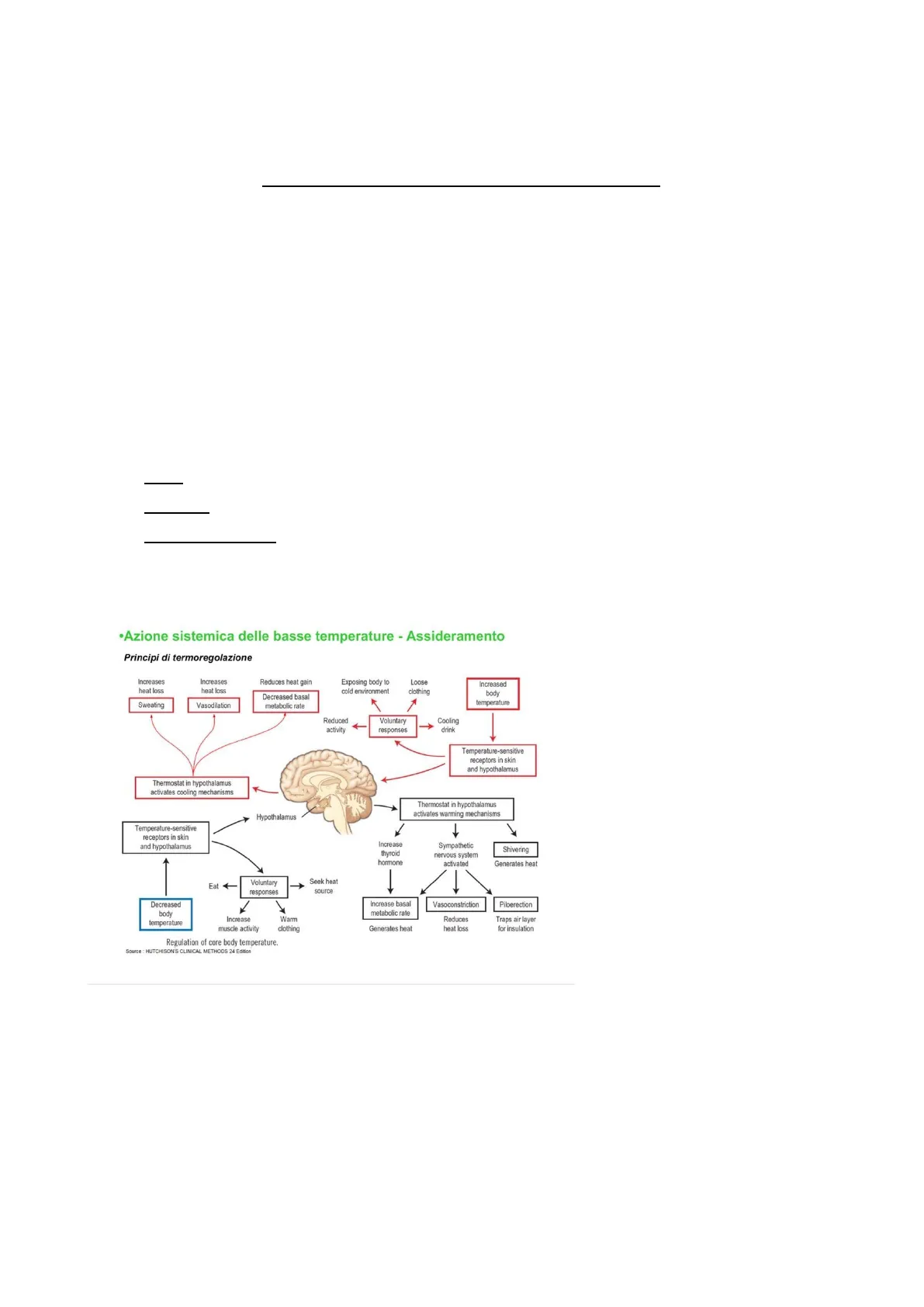 Se un soggetto è esposto ad una bassa temperatura ambientale, la temperatura corporea inizia a scendere, si