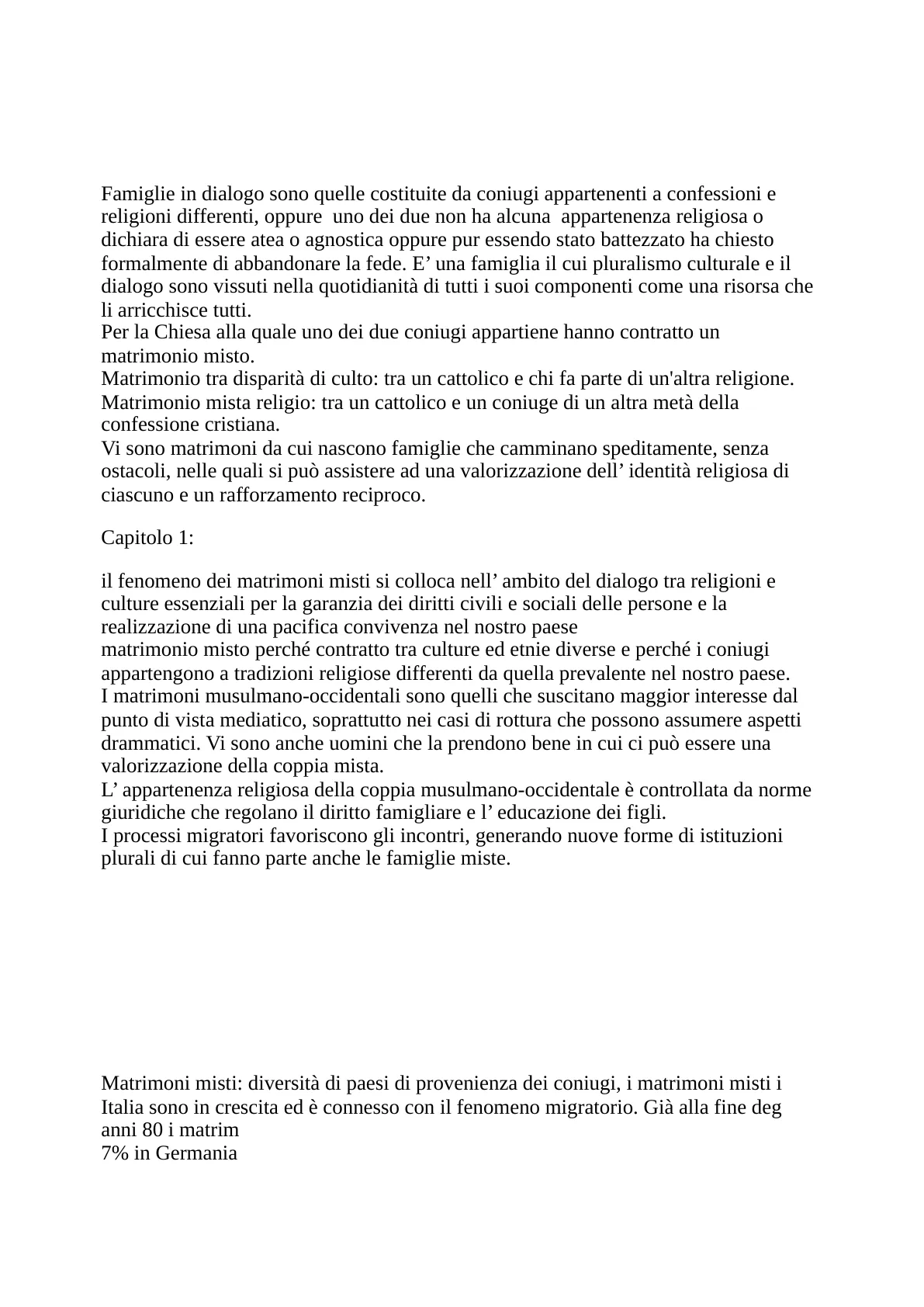 Documento dall'Università degli Studi Roma Tre su "Famiglie in dialogo", che analizza i matrimoni tra individui di diverse confessioni religiose o senza affiliazione religiosa. Il Pdf presenta statistiche dettagliate sui matrimoni interreligiosi in Italia, con focus su cattolici e musulmani, ebrei, buddisti e induisti, utile per lo studio universitario.