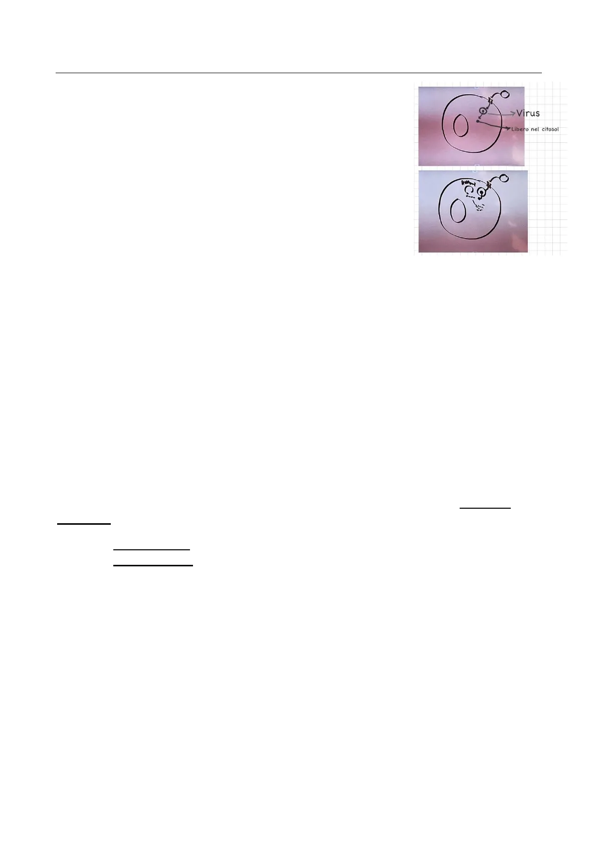 Vediamo una cellula, in cui riconosciamo la membrana plasmatica e la membrana nucleare; il virus