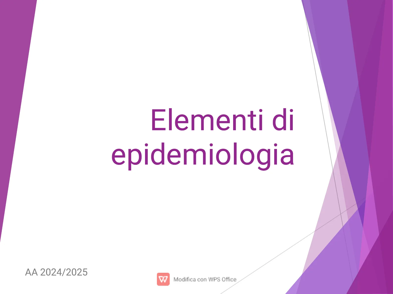 Modifica con WPS Office WEPIDEMIOLOGIA DESCRITTIVA ·Raccogliere le informazioni sulla frequenza e la distribuzione delle malattie Chi si ammala? Quando ci si ammala? Dove ci si ammala? EPIDEMIOLOGIA CAUSALE (ANALITICA) ·Studiare e controllare una malattia la cui causa è ignota · Determinare la fonte di una malattia la cui causa è nota ·Identificare i fattori che influenzano la comparsa e l'andamento delle malattie in popolazione Come varia la malattia in funzione dei diversi tipi di esposizione? Come varia la malattia in funzione di differenti suscettibilità individuali?